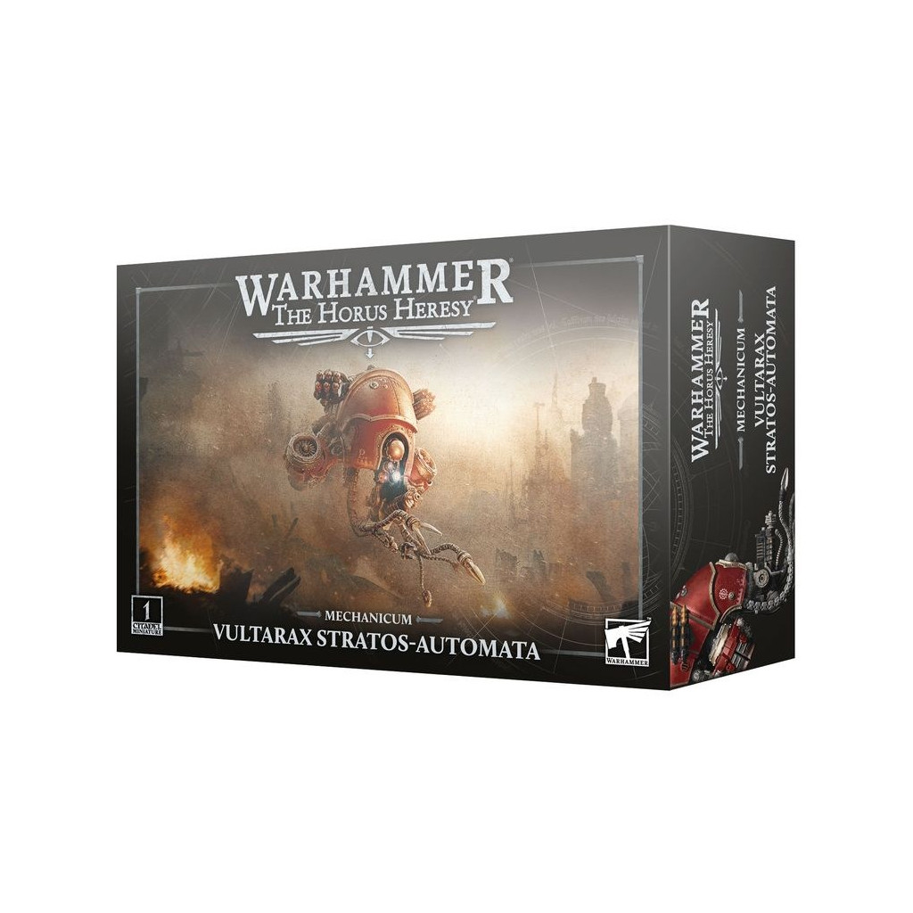 Ce kit en plastique permet d'assembler un Automate-stratos Vultarax, une plateforme d'armes flottante pour vos armées du Mechanicum et des Conclaves Skitarii dans les parties de Warhammer: The Horus Heresy. Armée d'un électro-éclateur, d'un lance-missiles Vultarax et de serres dendrites, cette unité rapide constitue une menace de loin comme de près. Toute la variété de modèles et d'agencements différents des serres dendrites vous offre une certaine latitude pour le personnaliser.