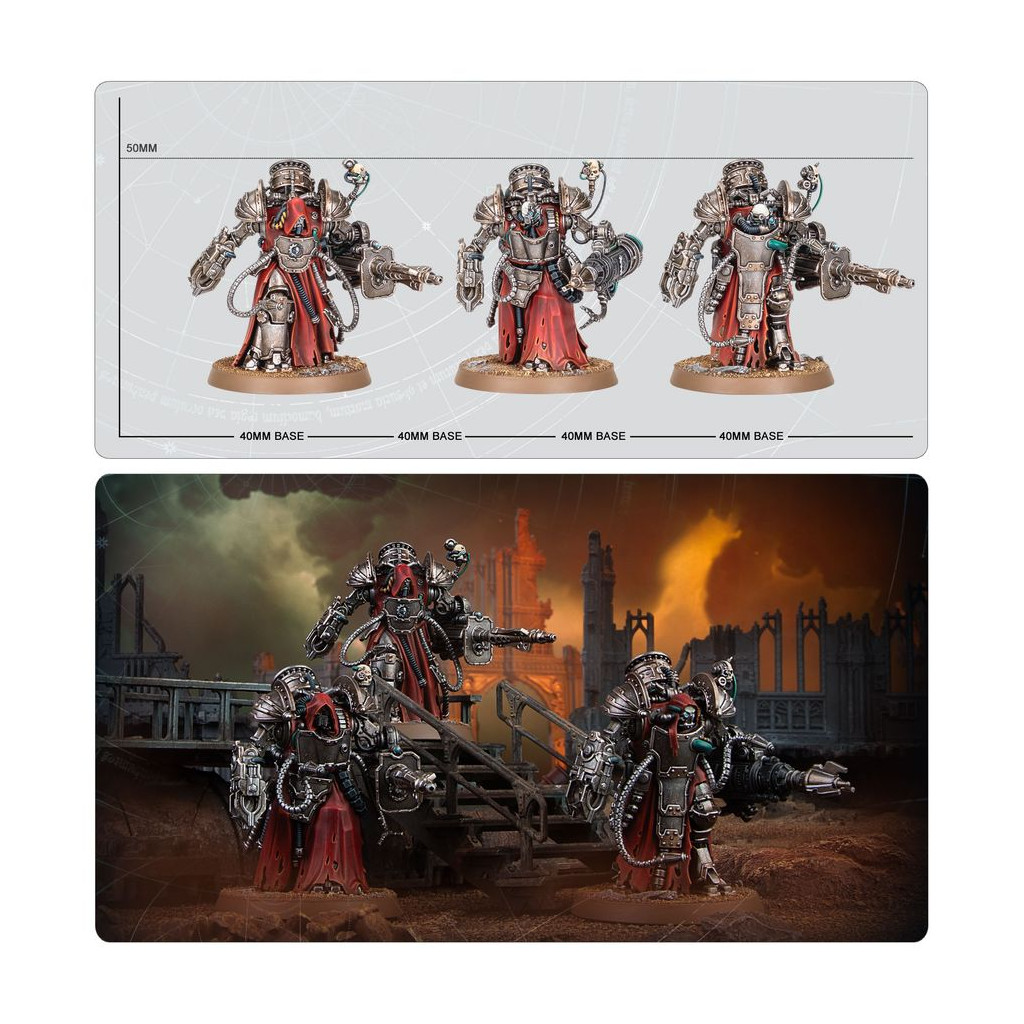 Ces figurines ne portent pas de marquages propres à leur allégeance, et vous pouvez donc les utiliser dans n'importe quelle force du Mechanicum, que vous considériez l'Empereur comme le véritable Omnimessie ou comme un faux prophète.