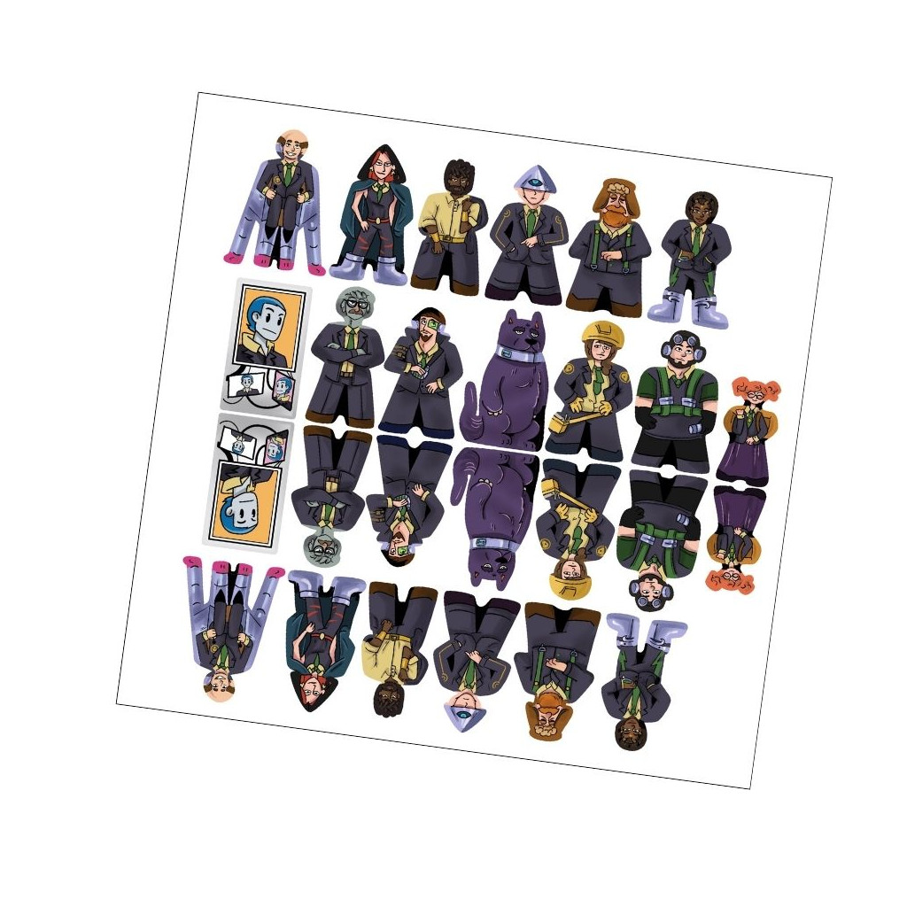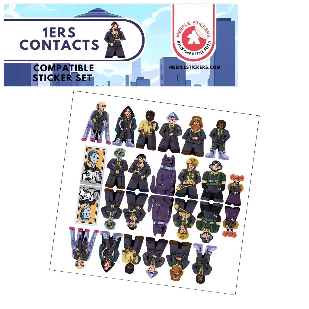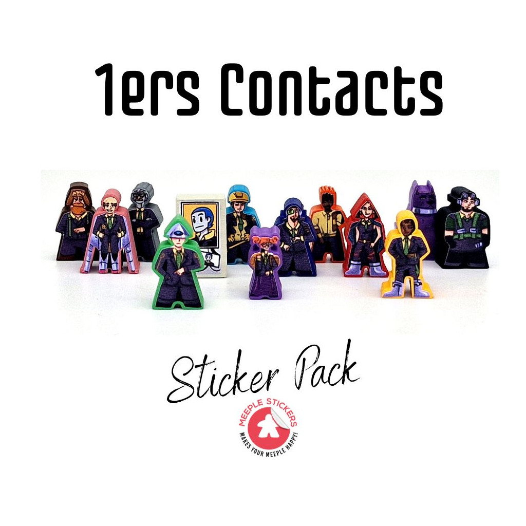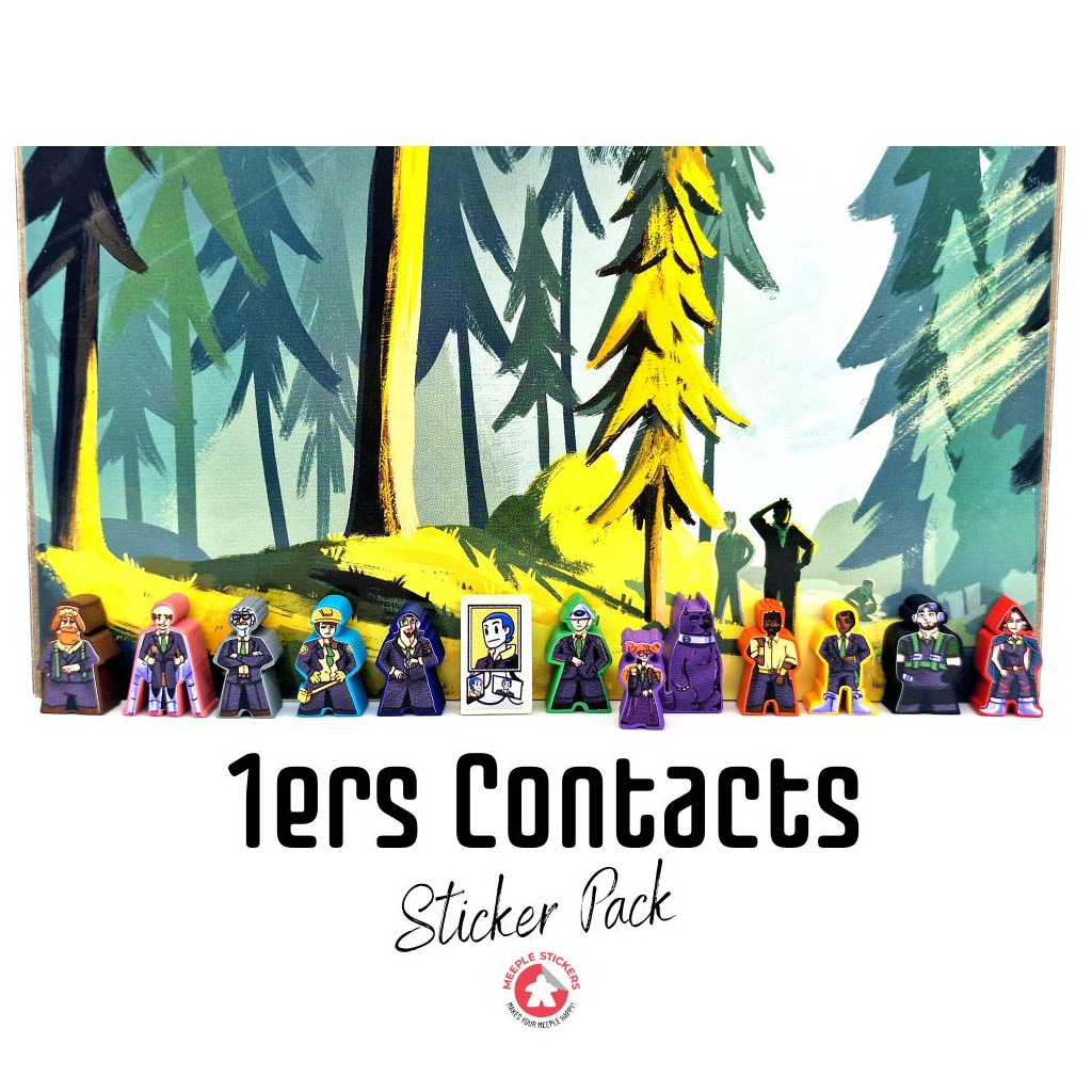 Dans le tout nouveau pack d’autocollants de MeepleStickers, nous vous proposons des designs personnalisés pour le jeu de société populaire 1ers Contacts. Grâce à nos autocollants de haute qualité, vous pouvez transformer les meeples en bois simples en agents avec leur propre apparence et personnalité, rendant la chasse aux extraterrestres encore plus immersive.