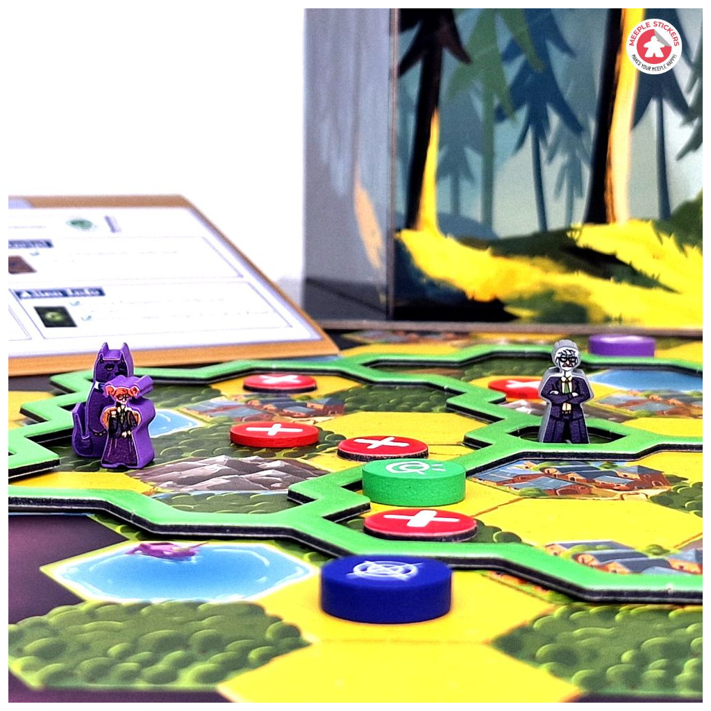 Ce pack contient des autocollants des deux côtés. Il s’agit d’une extension non officielle conçue et fabriquée par « Meeplestickers ». Tous les noms de marques, produits et services appartiennent à leurs propriétaires respectifs et ne sont en aucun cas liés à la marque « Meeplestickers ».