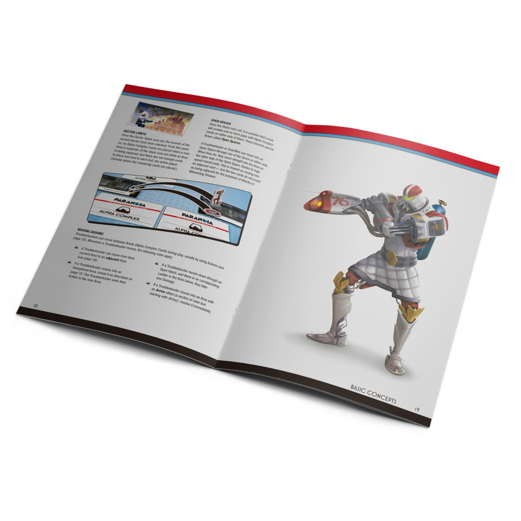 Bienvenue à Alpha Complex, la ville parfaite (et en aucun cas dystopique) dirigée par l'informatique bienveillante et infaillible ! Alpha Complex est un endroit dangereux, rempli de mutants, de sociétés secrètes et d'autres fauteurs de troubles. Il est fort probable que les Troubleshooters meurent. (Il est également fort probable qu'ils soient, en fait, des mutants, des membres de sociétés secrètes et des fauteurs de troubles). Parfois, la seule façon d'avancer (ou même d'aller quelque part) est de contourner les règles strictes d'Alpha Complex, mais faites attention à vous. Si quelqu'un est témoin de vos actes (justifiables ?) de trahison méprisable et le signale à l'Ordinateur, les choses pourraient mal tourner pour vous. Surtout si les GuardBots itinérants s'en mêlent.