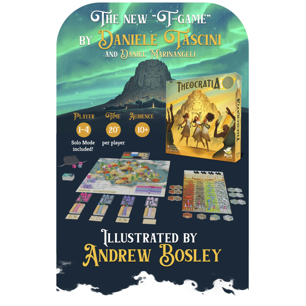 Theocratia est un jeu de civilisation dans lequel vous et jusqu'à trois autres joueurs tentez de façonner le destin de quatre civilisations. Vous les aiderez à croître, à fonder de nouvelles cités, à mener des batailles et à organiser de grandes célébrations en votre honneur, le tout dans le but de devenir la divinité la plus vénérée à la fin de la partie.