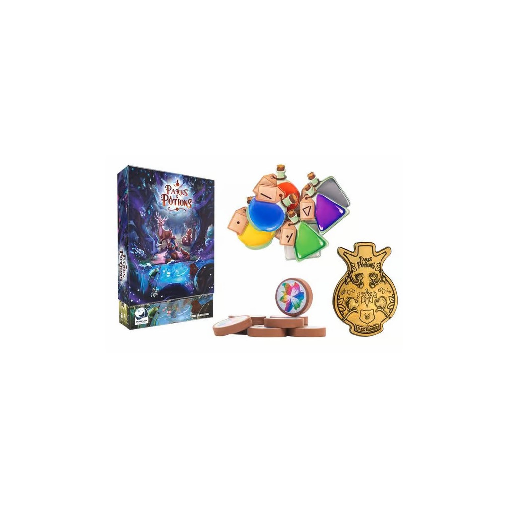 Parks & Potions se joue en 5 à 6 manches, chacune représentant une journée de travail. Le jeu est divisé en phases au cours desquelles les joueurs lancent les dés pour découvrir les fleurs à extraire, gérer leurs stocks et utiliser des potions pour atteindre leurs objectifs et soigner les animaux. Le mélange stratégique des potions et la réalisation des objectifs sont essentiels pour devenir le ranger le plus renommé.