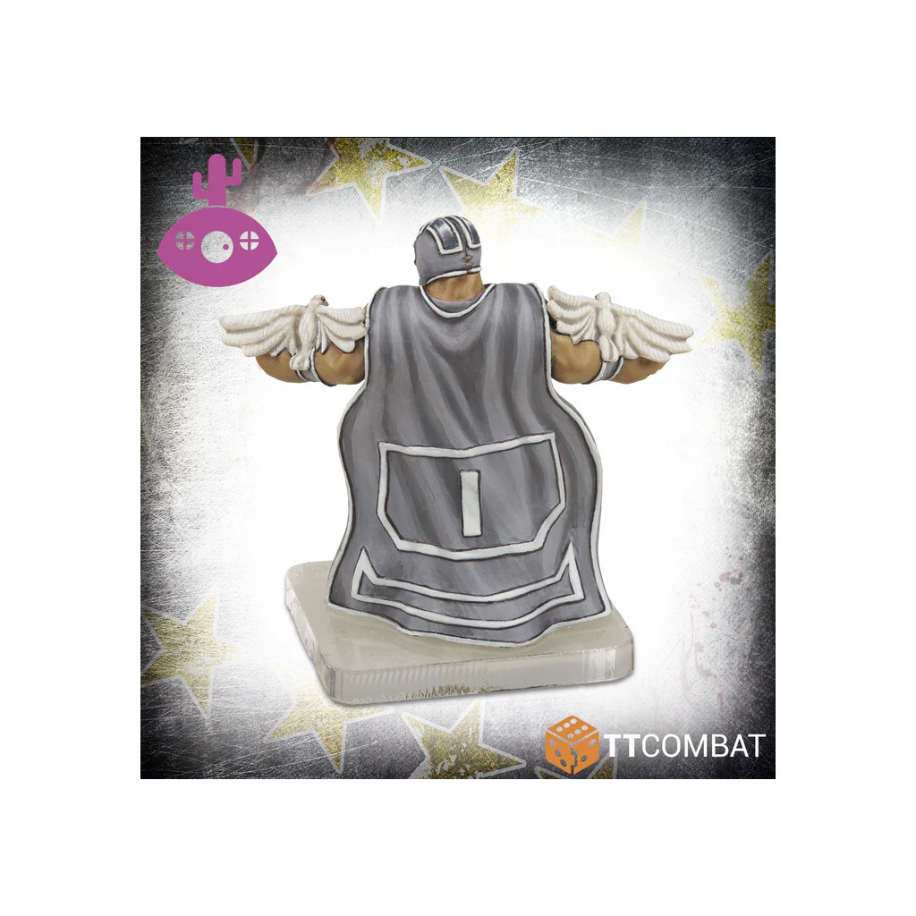 Santo De Plata, ce phare argenté, flotte dans le ring, ce qui n'est pas surprenant vu la quantité d'argent dans ses statistiques... il en est partout ! Cela se reflète dans ses enchaînements de mouvements : la Lanza Santa est une capacité mortelle aux cordes avec des dégâts de base de 3. La Bomba Crucifijio peut mettre à terre même les plus grands lutteurs, mais ceux-ci seront probablement mis K.O. avant cela par l'énorme réserve de dés.