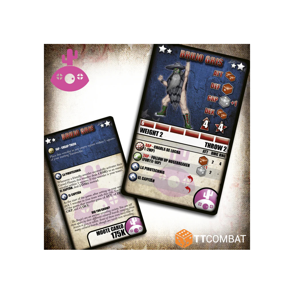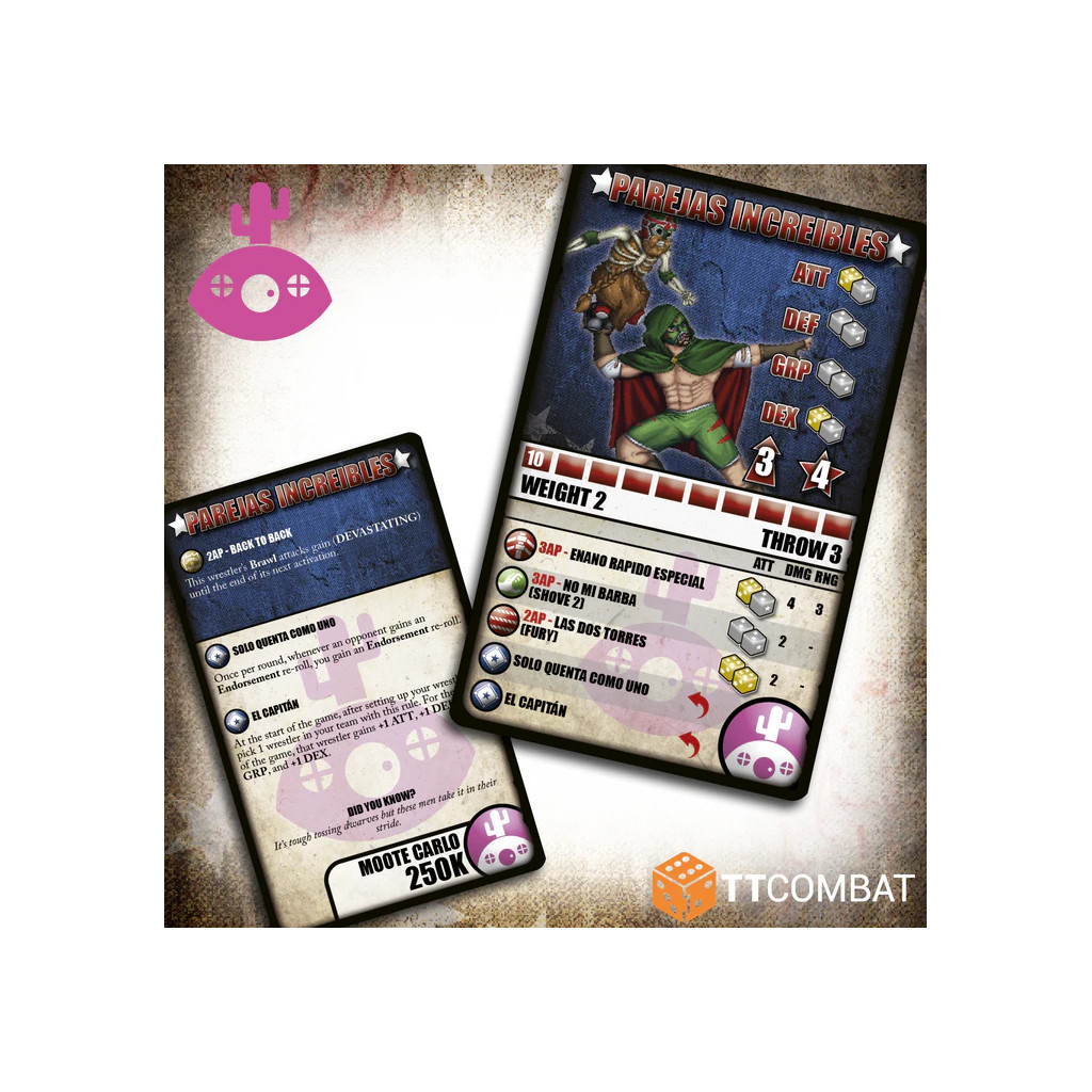 Brawlmarillion parcourt le monde à la recherche du danger. Le Brujo Gris est membre d’un ordre ancestral, expert en effets pyrotechniques et en coups bas. Les Parejas Increibles unissent leurs forces et combattent à l’unisson.