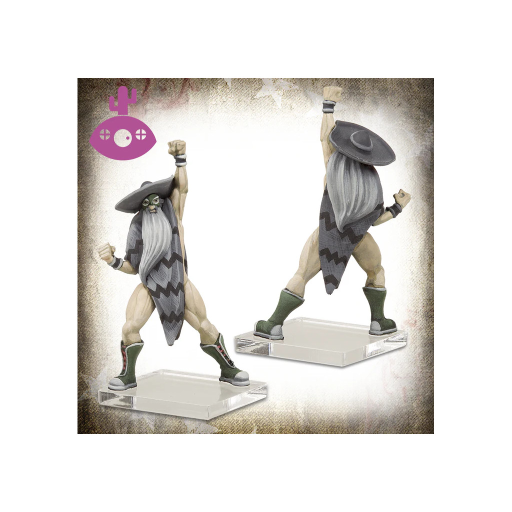 - les figurines en résine de Brujo Gris, Alto Guardian, Parejas Increibles, Pluma Luchadora et Lunchador