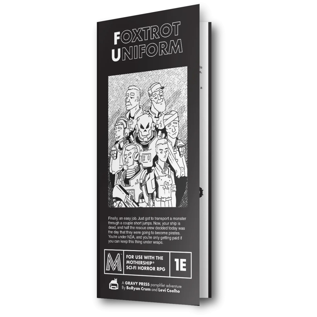 Foxtrot Uniform est une aventure autonome pour une séance unique, se déroulant quelque part dans les profondeurs de l’espace. Vous êtes sous contrat avec Tin Sing Capital Deployment Strategies pour une mission simple : signer un accord de confidentialité, puis piloter le Gordon Andy et sa cargaison jusqu’à une installation en orbite autour de Procyon B.
