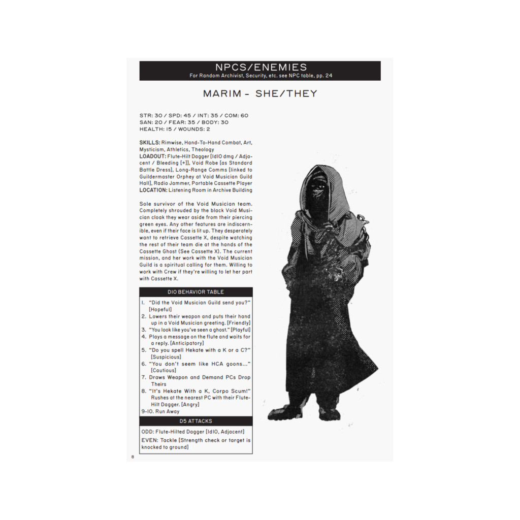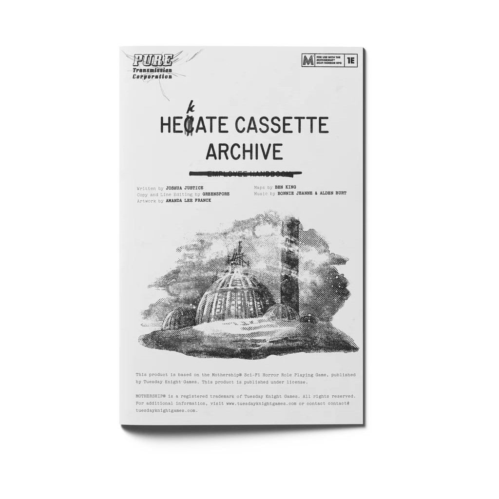 Hecate Cassette Archive est un zine d’aventure et de contexte en 48 pages pour la 1ère édition de Mothership. Ce module est jouable en tant qu’aventure autonome ou comme un lieu à intégrer dans votre campagne. Le tout est conçu pour être prêt à jouer avec un minimum de préparation.