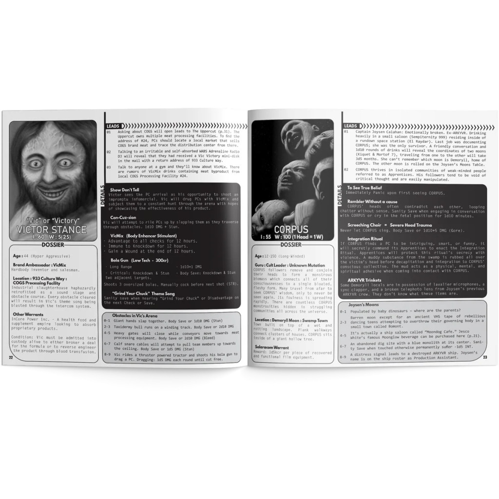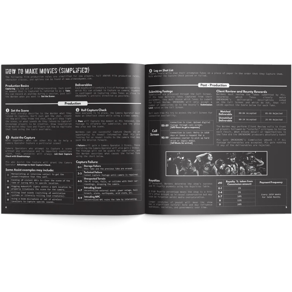 Proposant 14 mini-aventures centrées sur des cinéastes dans un zine de 21,5 x 21,5 cm avec reliure piquée, ce supplément s'intègre facilement à votre histoire actuelle ou permet de lancer une toute nouvelle campagne. Chaque profil de prime est réparti entre les pages recto et verso du zine. Les joueurs utilisent les écrans de contrôle ("Call Screen Monitors") côté recto pour déchiffrer les indices et localiser leur cible. Les Wardens (Gardiens) utilisent les dossiers côté verso pour mettre en scène d'horribles rebondissements et les capacités mortelles des personnages.