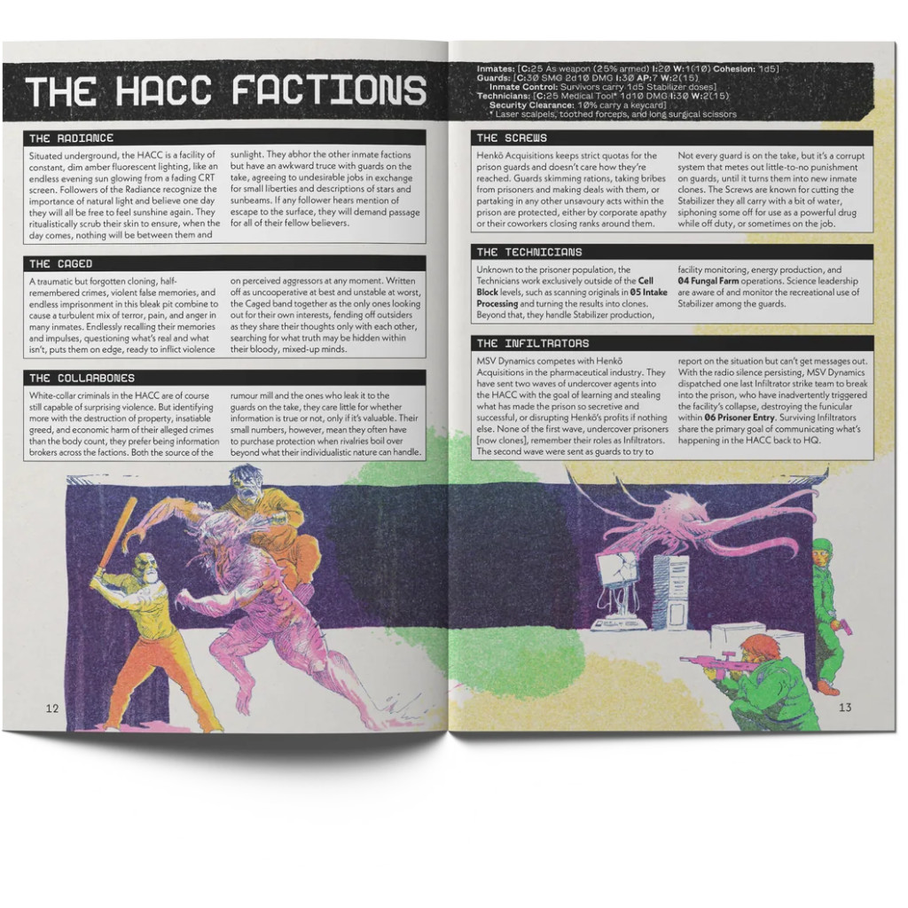 Chaque joueur contrôle quatre détenus, transformant l'expérience classique de Mothership en une aventure de type funnel. Les personnages joueurs qui parviennent à s'échapper à la surface voient leur histoire d'origine se raconter directement à la table. Un type de personnage sans classe inclut des tables aléatoires pour déterminer ce qui a envoyé le détenu en prison, son équipement de départ et ses compétences. Pour maintenir le rythme de l'action, chaque personnage dispose d'un nouvel attribut, la Cohésion, avec de nombreuses occasions de découvrir ce qui se passe lorsqu'elle tombe à zéro.