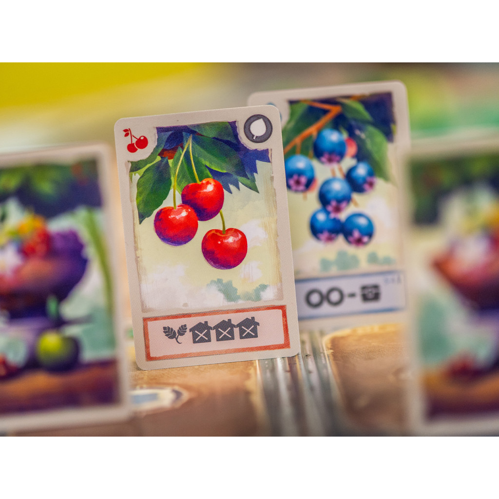 Récoltez des fonds en vendant des fruits, plus le fruit que vous vendez est présent sur le marché et chez les autres joueurs, plus vous gagnez d’argent. Utilisez ensuite le pouvoir de votre carte fruit et votre argent pour recruter une guilde oui la faire monter son niveau. Chaque carte guilde a 3 niveaux ayant chacun un coût. Amenez-les au niveau ultime pour empocher des points de victoire. De plus, les cartes Guilde ont également des effets et des pouvoirs. Petit à petit, construisez votre ‘moteur’ de points en déclenchant des synergies entre vos cartes.
