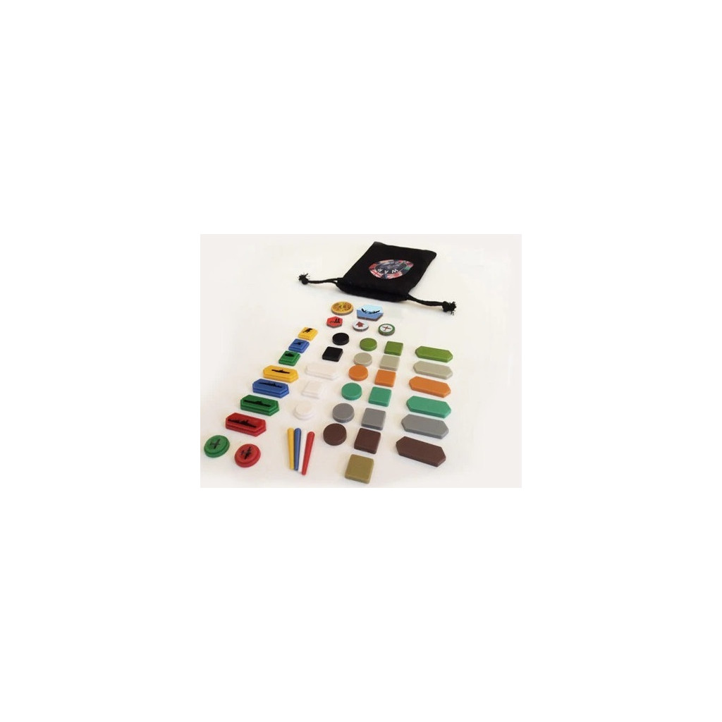 - 1 exemplaire de chaque jeton Multiplier en plastique (1 terrestre blanc, 1 aérien blanc, 1 maritime blanc)