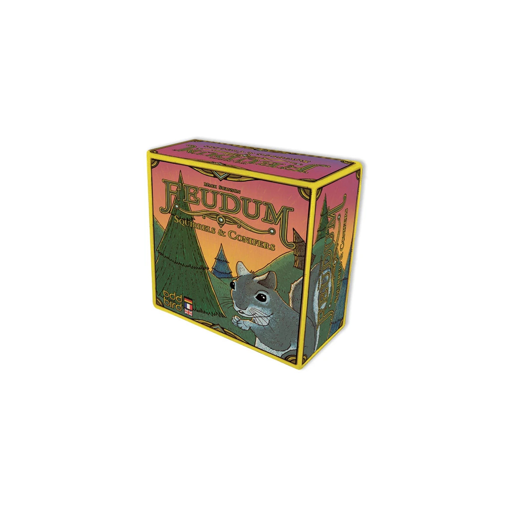 Feudum: Squirrels & Conifers est une magnifique « mini-extension » comprenant 50 écureuils appétissants et 6 conifères en bois qui donnent vie à la topographie du plateau ! Cette extension remplace les cubes alimentaires verts par des cubes roses et crée une source alimentaire multiplicatrice sur la carte. Elle améliore également l'accessibilité pour la majorité des joueurs daltoniens.