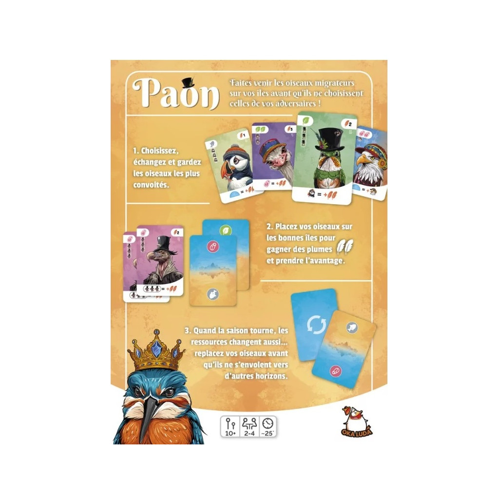 Les joueurs posent des îles (ou améliorent celles existantes) pour générer des ressources (plantes, poissons, viande). Ils doivent ensuite placer leurs oiseaux sur des emplacements valides correspondant à leurs besoins alimentaires.