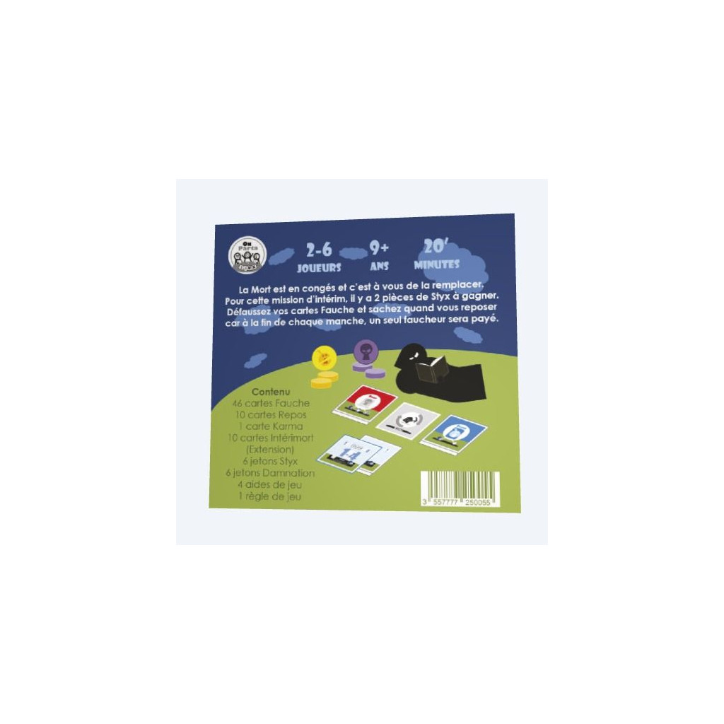 Dans fauche qui peut !, vous remplacez La Mort en tant que faucheur à temps partiel. Pour vous faire payer 2 pièces de Styx, vous devez défausser les cartes Fauche de votre main, si possible en premier.