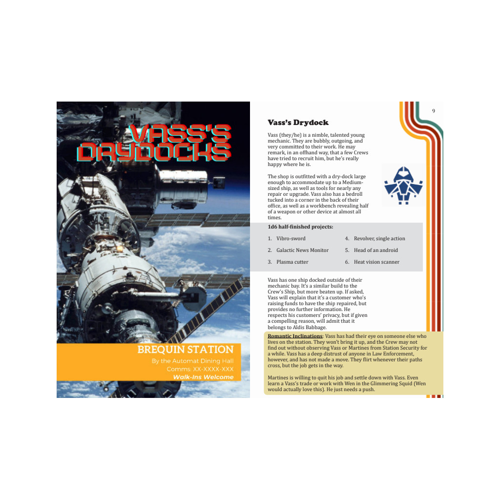 Un module pour votre campagne d’Orbital Blues. Il peut s’intégrer à n’importe quelle partie du jeu, et ses lieux peuvent être déplacés dans d’autres parties de votre univers. Ce module inclut également une station servant de décor à ce nouvel environnement.
