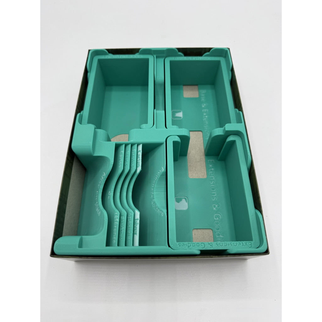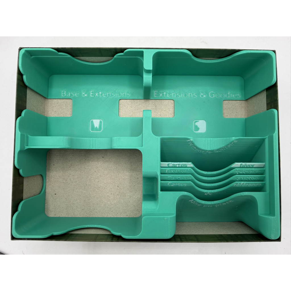 - L’insert a été conçu pour accélérer la mise en place du jeu grâce à des compartiments distincts et étiquetés permettant de séparer efficacement :