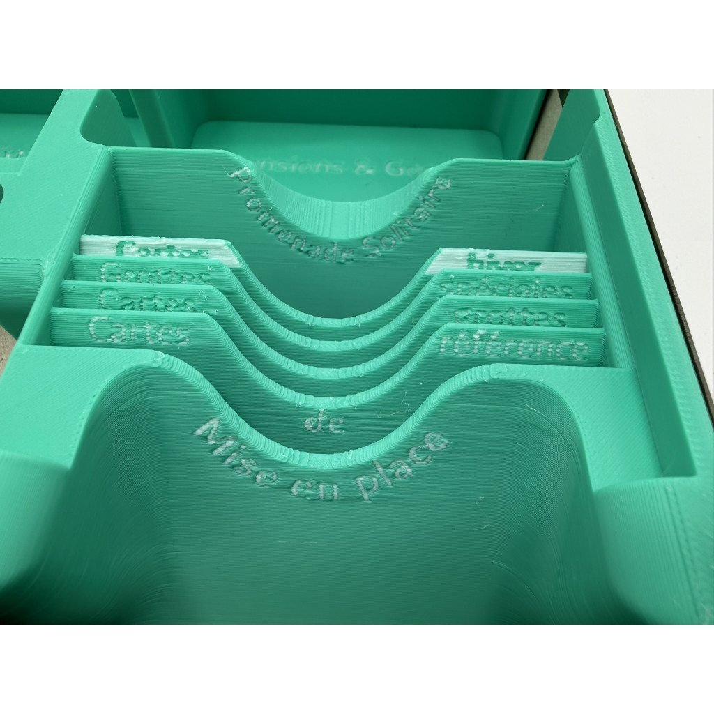 - Chaque type de carte est rangé de manière logique, pour une préparation immédiate de la partie, que ce soit en solo ou en multijoueur.