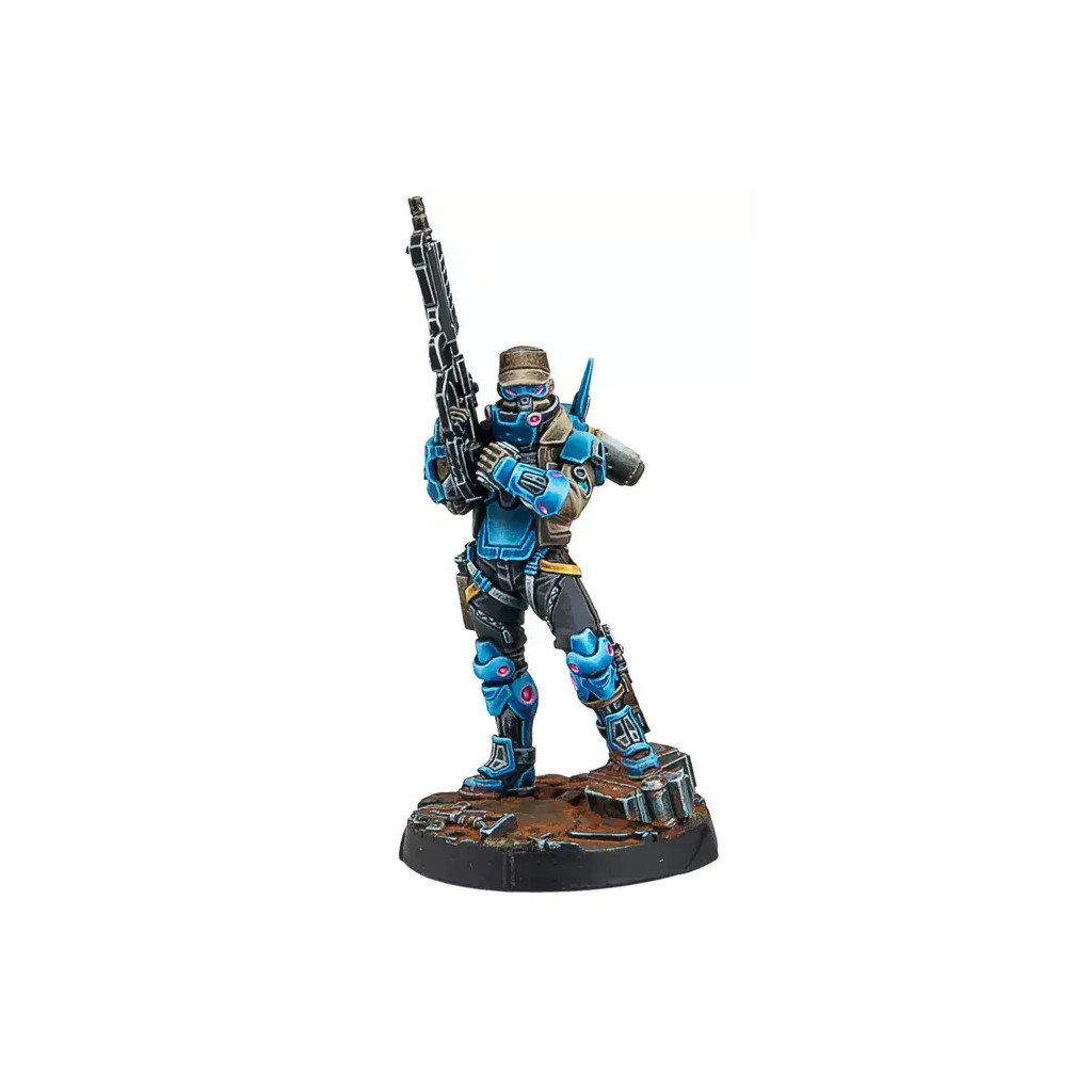 Cette boîte contient 3 figurines de l'Armée Sectorielle Kestrel de la faction PanOcéania : 1 Drummer avec Fusil de Précision MULTI, 1 Drumbot avec Lance-flammes Lourd, et 1 Fennec avec Thunderbolt. Une excellente boîte pour enrichir votre collection de forces Kestrel.