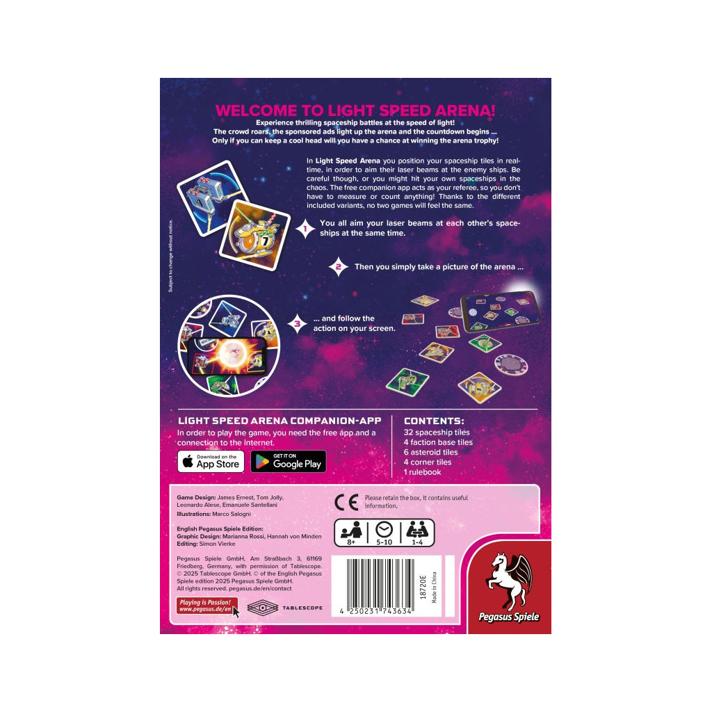 Light Speed Arena est un jeu de tir en temps réel sur table, dans lequel vous visez avec vos tuiles et prenez une photo avec votre smartphone pour permettre à l'application de faire vivre la bataille pour vous !