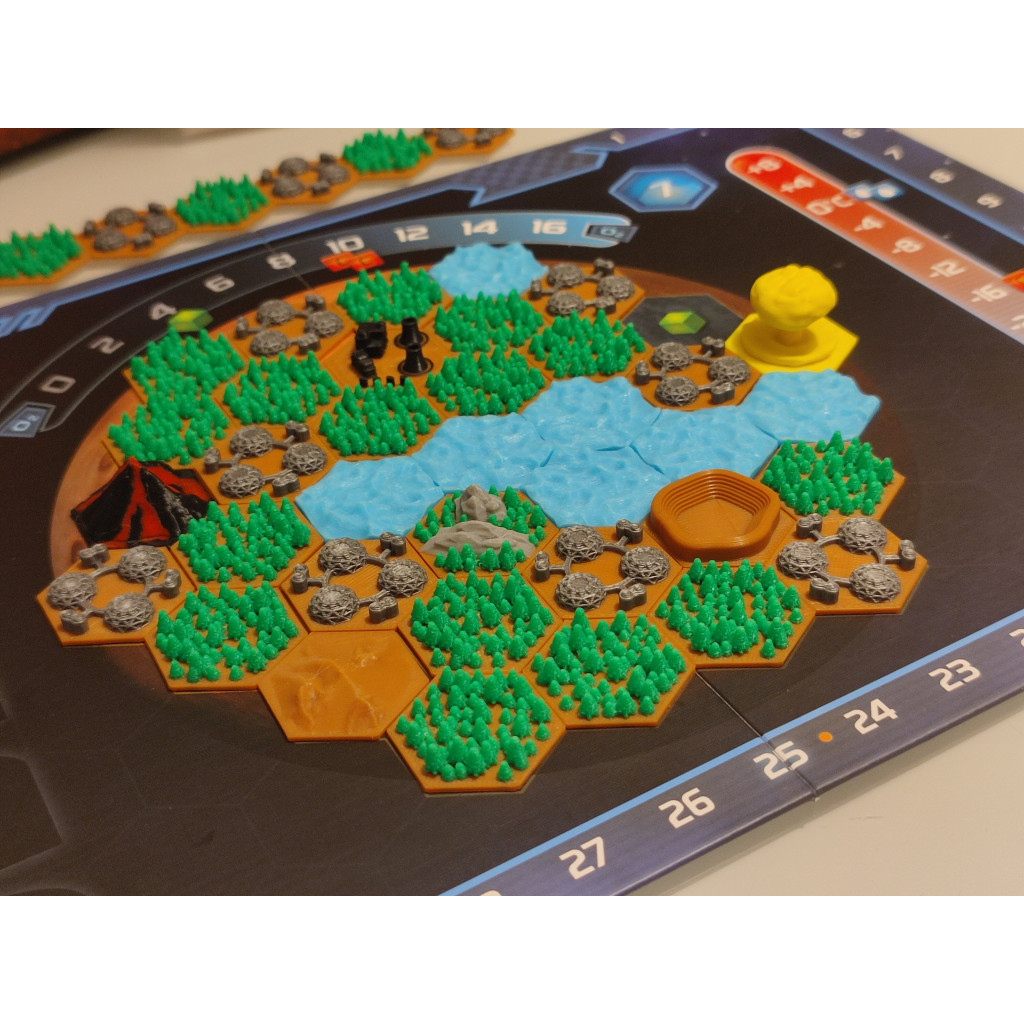 Le set d'upgrades compatible avec le jeu Terraforming Mars - Le Jeu de Dés, contient 43 tuiles 3D. Dites adieu aux tuiles en carton, ces nouvelles tuiles les remplacent parfaitement (hexagones de 2,6 cm de côté).