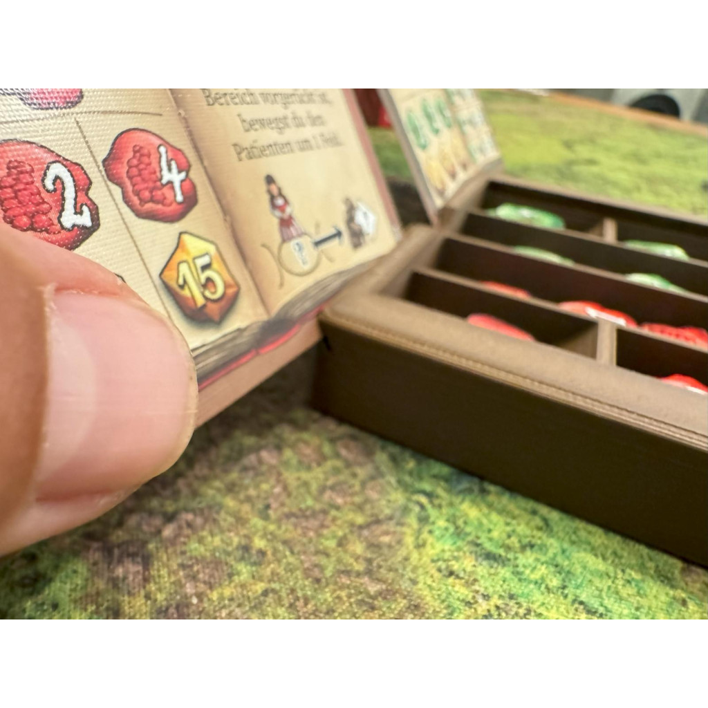 - 1 boîte à 2 compartiments pour tous les patients, les pièces, les stands de marché et les marqueurs bonus