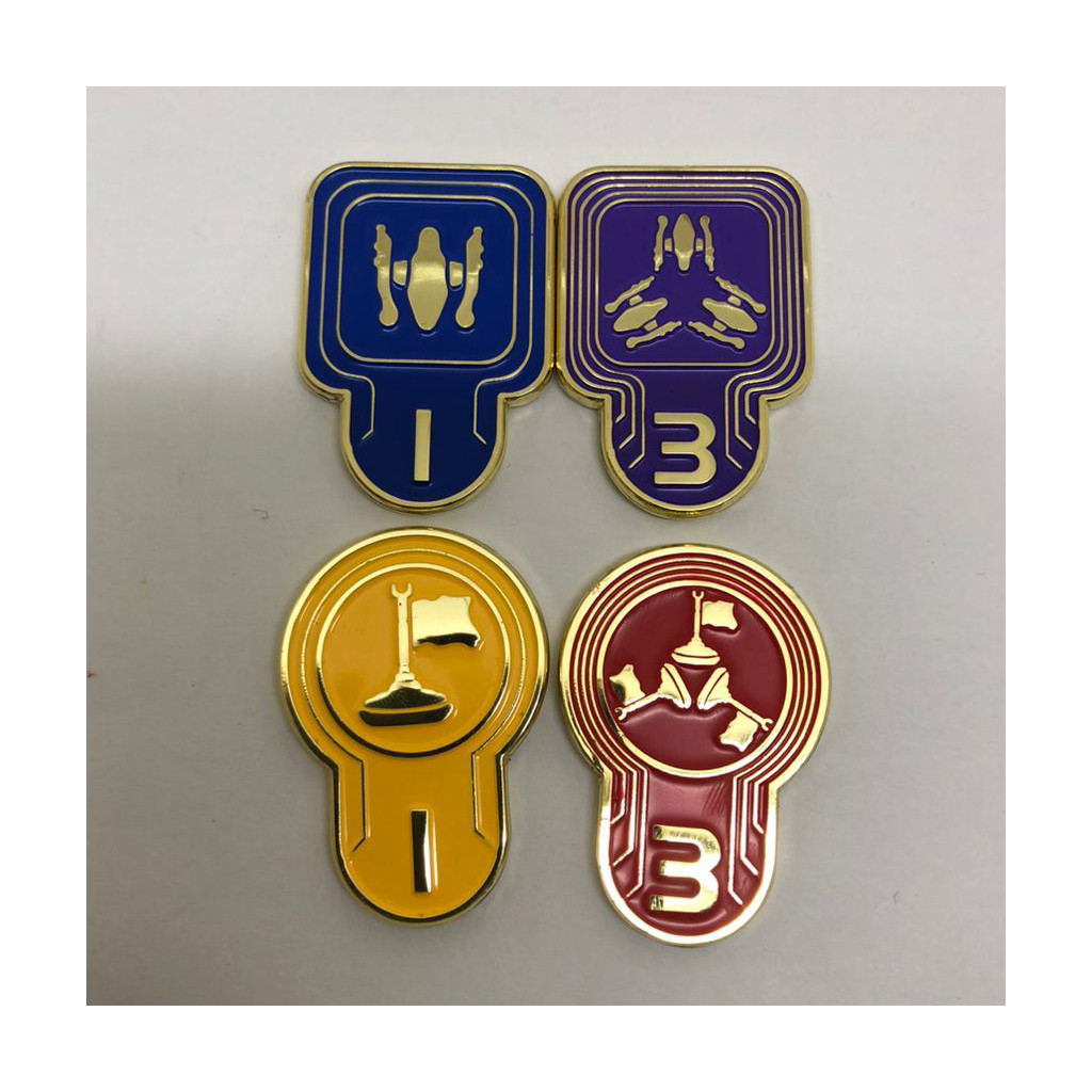 La couleur de base des jetons est le laiton brillant. Ils ont des bords biseautés pour faciliter leur prélèvement sur des surfaces dures. Ils devraient bien s'empiler et peuvent être déployés en éventail pour montrer leur valeur lorsqu'ils sont empilés.