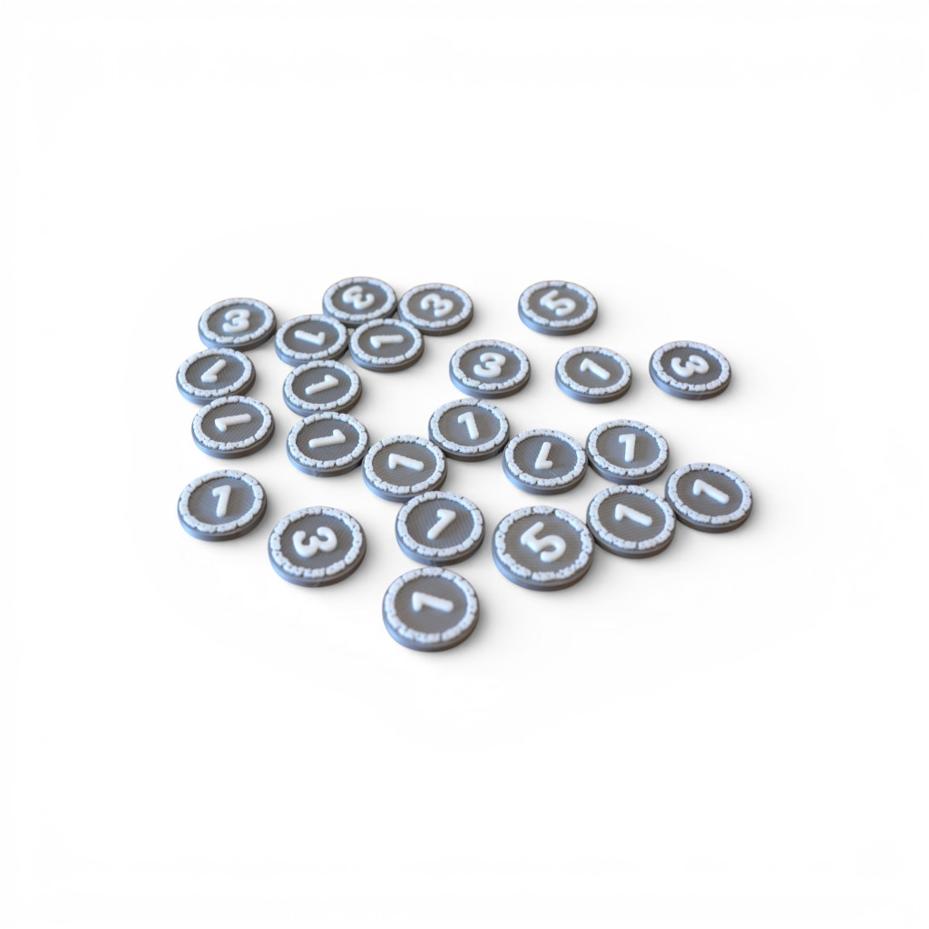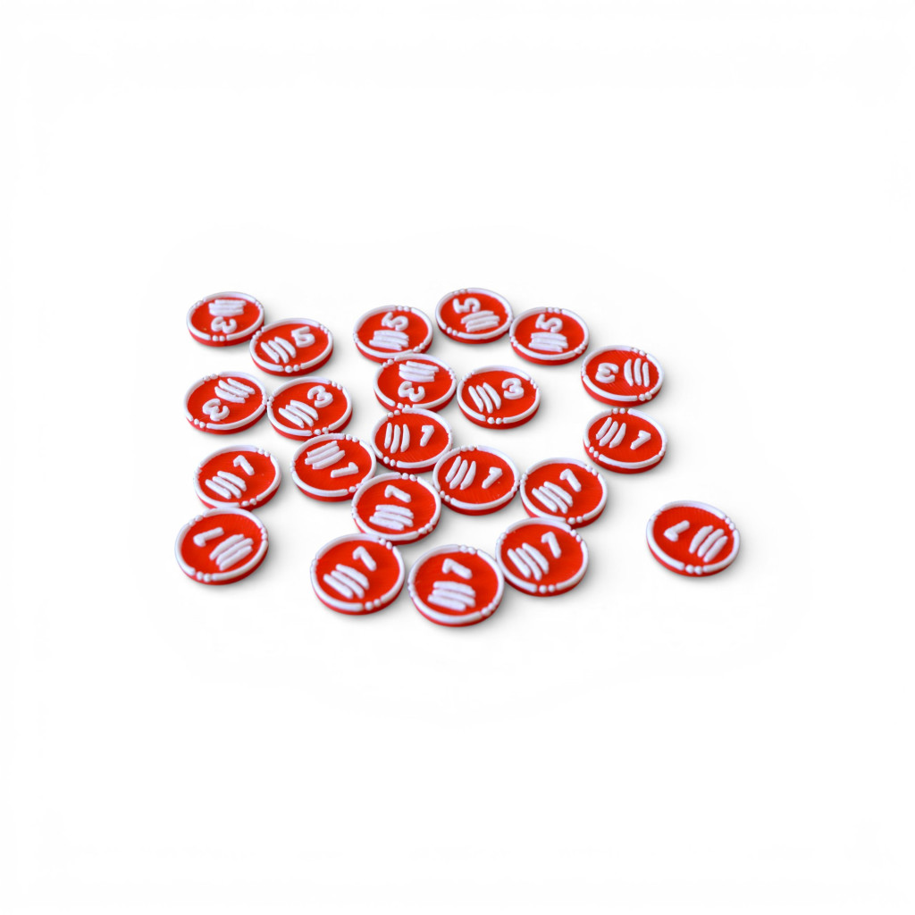- 24 jetons Ressource (valeurs 1, 3 et 5)