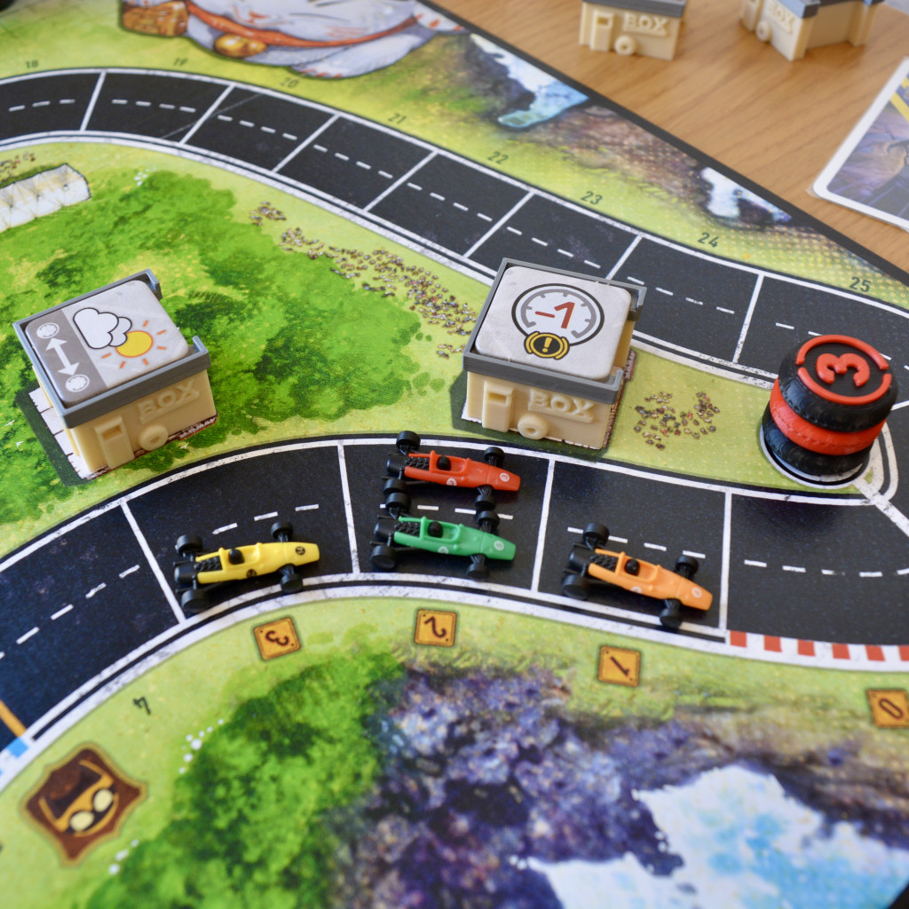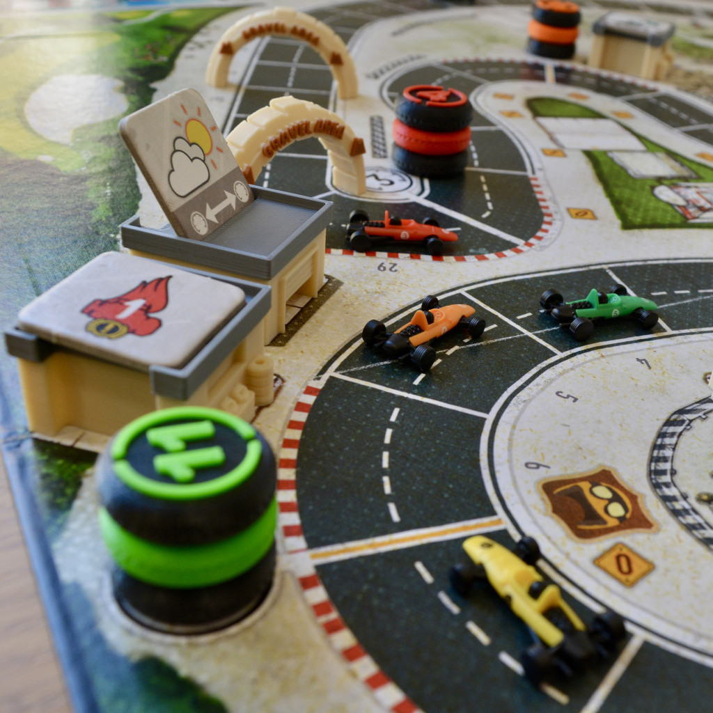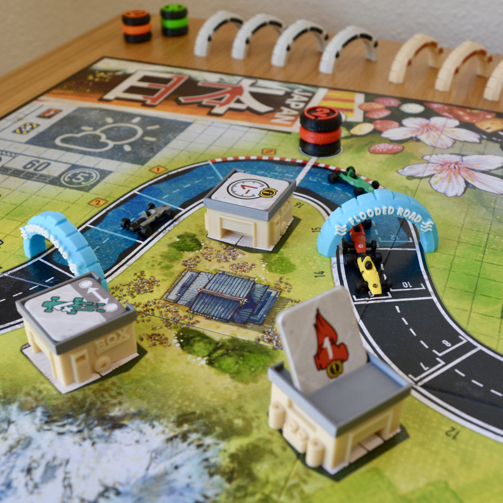 Conçus comme des garages de Formule 1 miniatures, ces supports en 3D permettent de présenter de manière ordonnée les jetons de route du jeu, afin que chaque joueur puisse les voir clairement d'un seul coup d'œil : fini les effets manqués ou les coins encombrés du plateau.