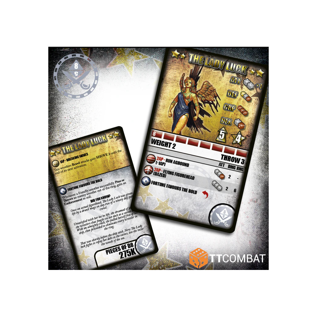 Lady Luck est une bagarreuse qui affiche une attaque constante de 2 argent plus 1, et sa solide carrure lui confère une défense de 1 or, 1 argent et 1 bronze, ce qui fait de Lady Luck une adversaire redoutable.