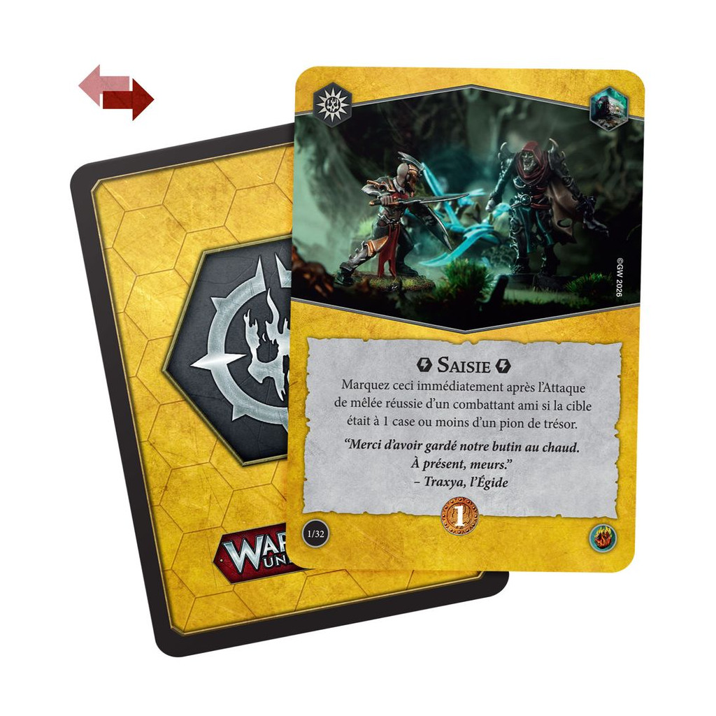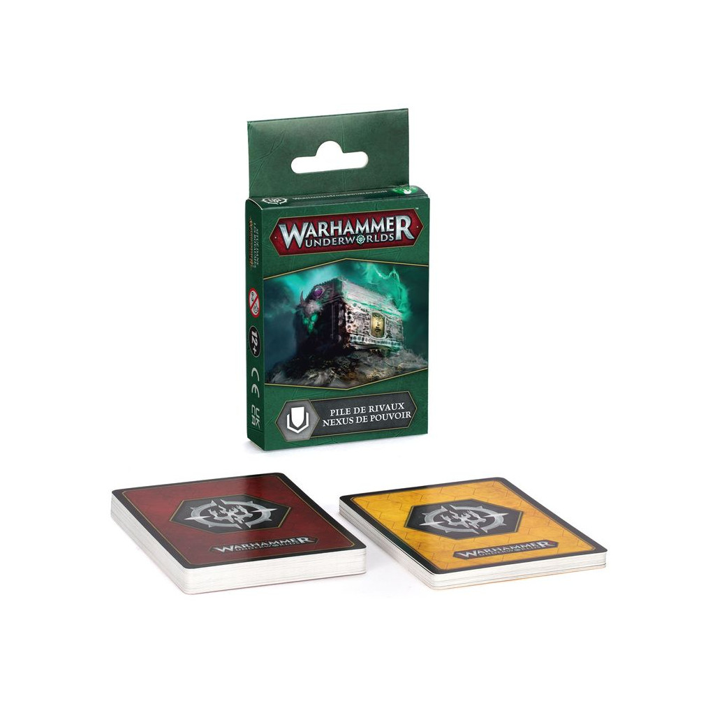 Nexus de Pouvoir est une pile de Rivaux complète et prête à jouer, utilisable par n'importe quelle bande dans vos parties de Warhammer Underworlds. Il vous suffit d'ouvrir le paquet, de mélanger les cartes, et c'est bon! Cette pile se classe dans le style de jeu Prendre et Tenir, et introduit le statut "envieux", qui améliore les aptitudes de vos combattants lorsqu'ils se trouvent près de trésors. Cette pile fonctionne bien avec n'importe quelle bande de style Prendre et Tenir. Utilisez ces cartes de façon autonome ou mélangez-les avec une autre pile pour créer une pile au format Némésis.