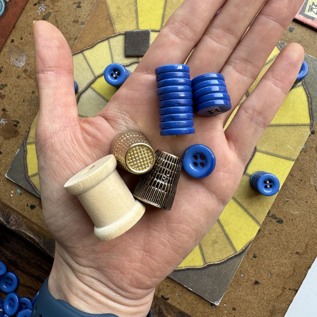 - 1 dé à coudre doré (comme jeton de temps),