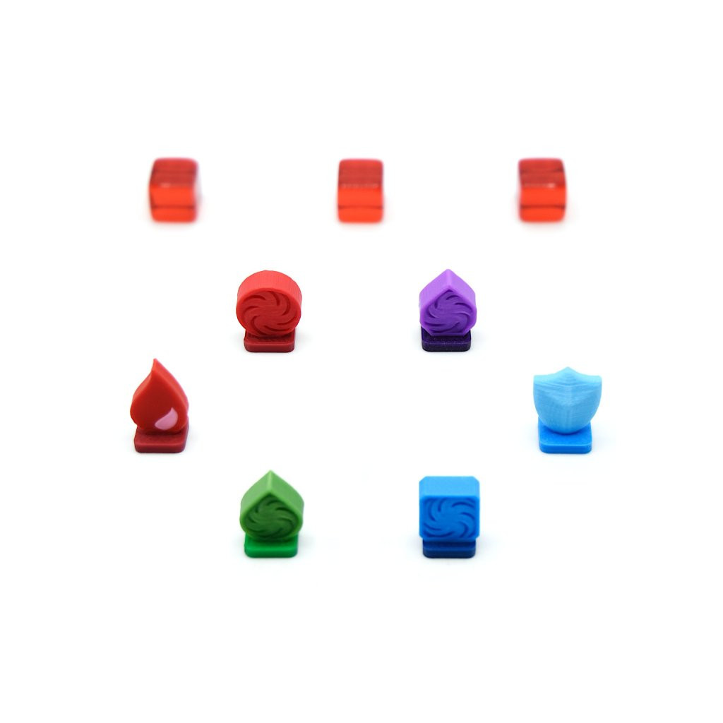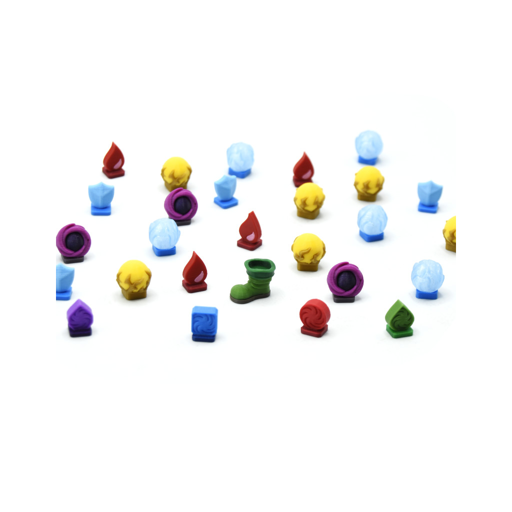 - 14 jetons Orbe : 6 Éclair, 5 Givre et 3 Ténèbres