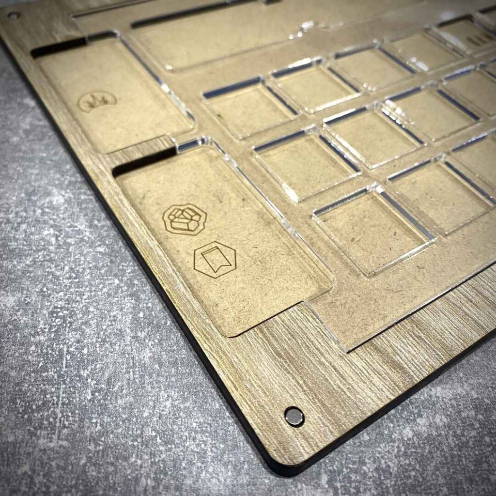 Fabriqués à partir de HDF, de HDF laminé et d'acrylique transparent, nos matériaux offrent un aspect élégant et garantissent la durabilité du plateau de jeu. Le plateau équipé d'aimants simplifie le rangement après le jeu, offrant une solution compacte et sûre.