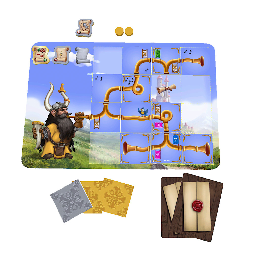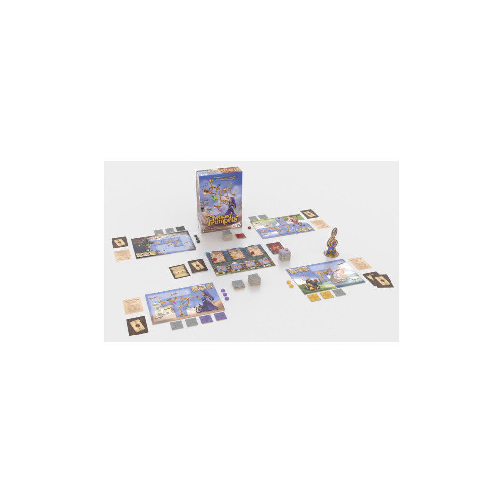 Twisted Trumpets est un jeu de pose de tuiles compétitif où les joueurs se disputent le prestigieux titre de « Royal Bugler » en façonnant la trompette la plus fantasque du royaume !
