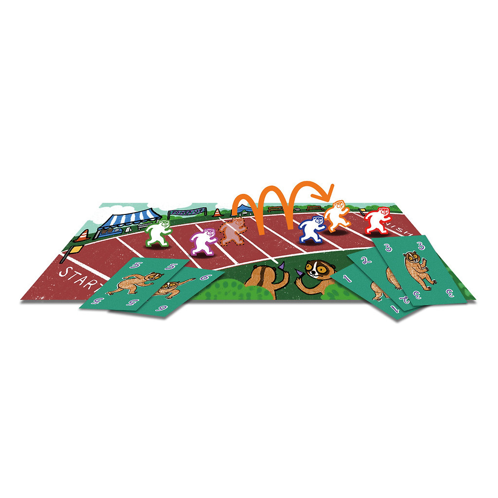 Too Sloth To Win est un jeu de course où les joueurs jouent à tour de rôle des combinaisons de cartes plus fortes pour avancer sur la piste de course. Chaque fois que vous jouez une combinaison, votre pion avance d’un nombre de cases égal au nombre de cartes jouées. Atteignez la neuvième case ou au-delà pour franchir la ligne d’arrivée. Gardez simplement deux choses en tête :