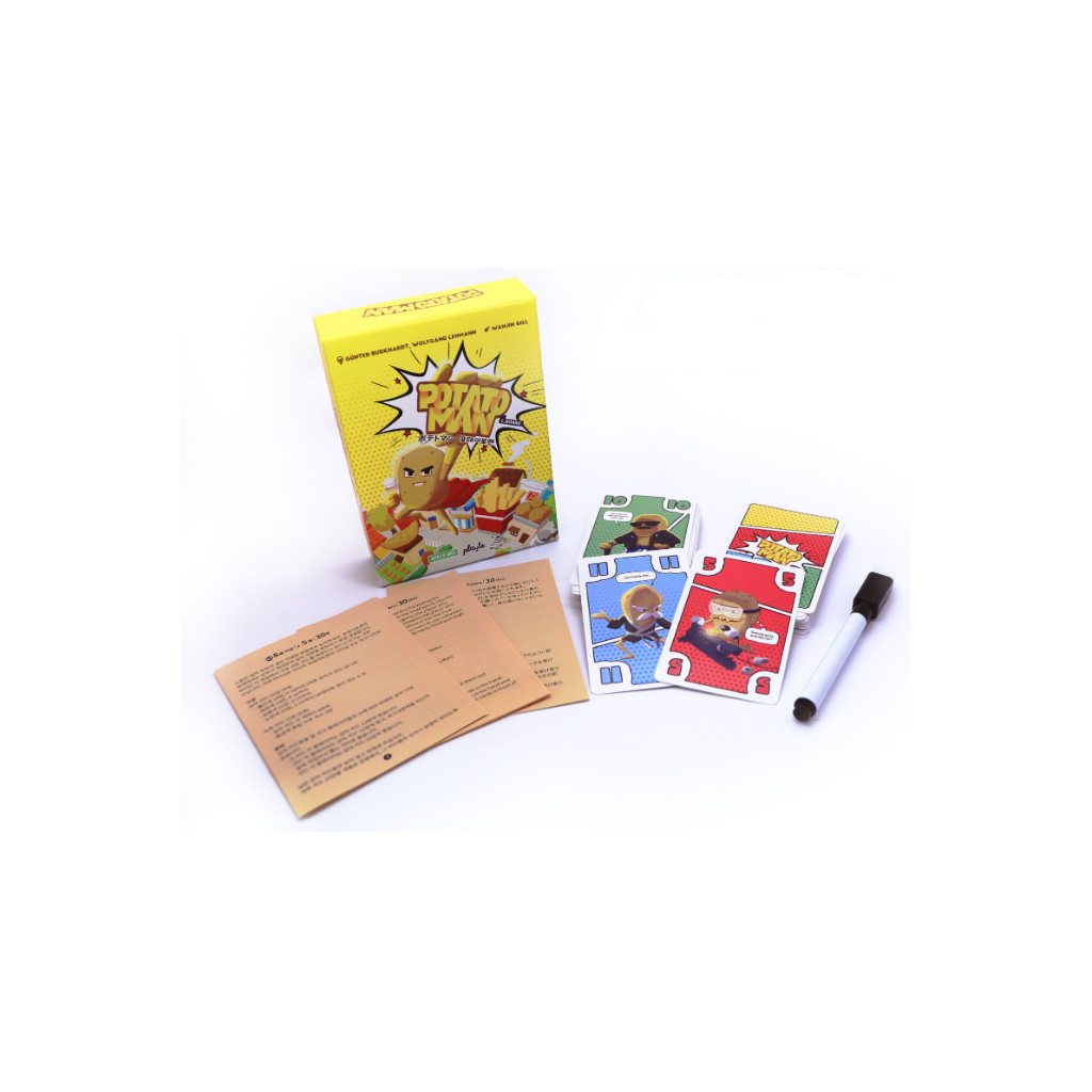 Potato Man est un jeu de plis pour 2 à 5 joueurs qui s'affrontent pour des points au fil de plusieurs manches. Chaque pli est unique, et vous ne pouvez pas répéter les couleurs de cartes. Utilisez vos cartes judicieusement pour remporter les plis les plus précieux et exploitez le pouvoir du puissant héros Potato Man pour vaincre le maléfique Lord Fry.
