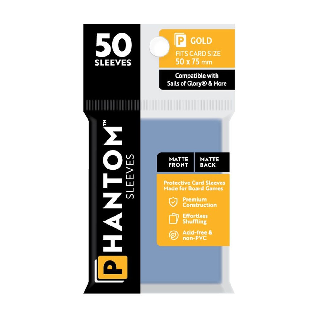 Phantom Sleeves: Gold Size - Matte/Matte est un lot de 50 pochettes de protection de cartes matte et de taille 50 mm x 75 mm.