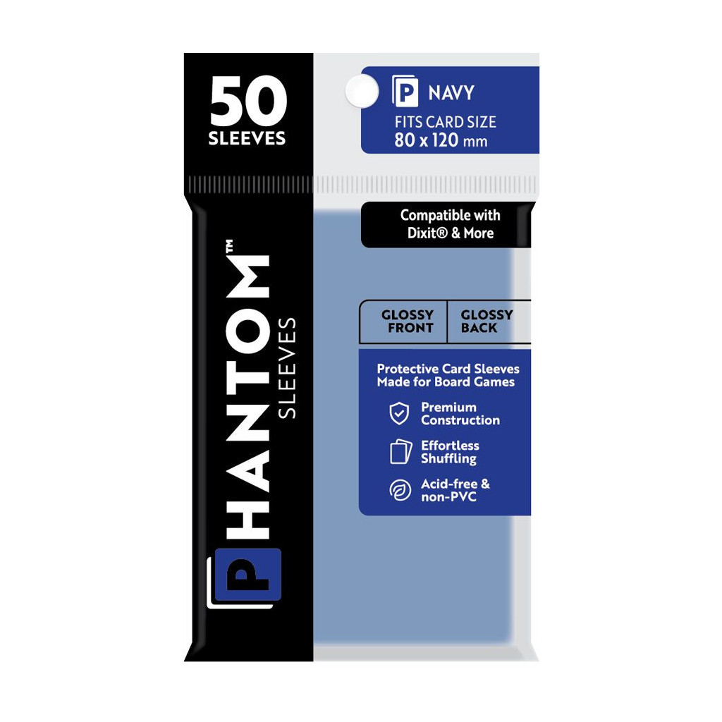 Phantom Sleeves: Navy Size - Gloss/Gloss est un lot de 50 pochettes de protection de cartes brillantes et de taille 80 mm x 120 mm.