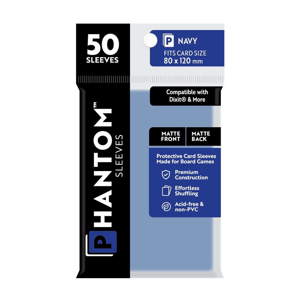 Phantom Sleeves: Navy Size - Matte/Matte est un lot de 50 pochettes de protection de cartes matte et de taille 80 mm x 120 mm.