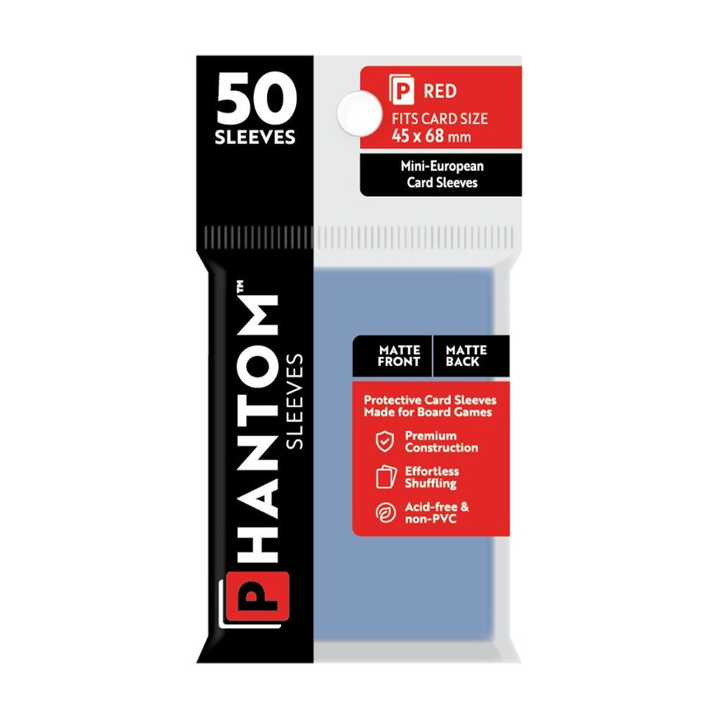 Phantom Sleeves: Red Size - Matte/Matte est un lot de 50 pochettes de protection de cartes matte et de taille 45 mm x 68 mm.