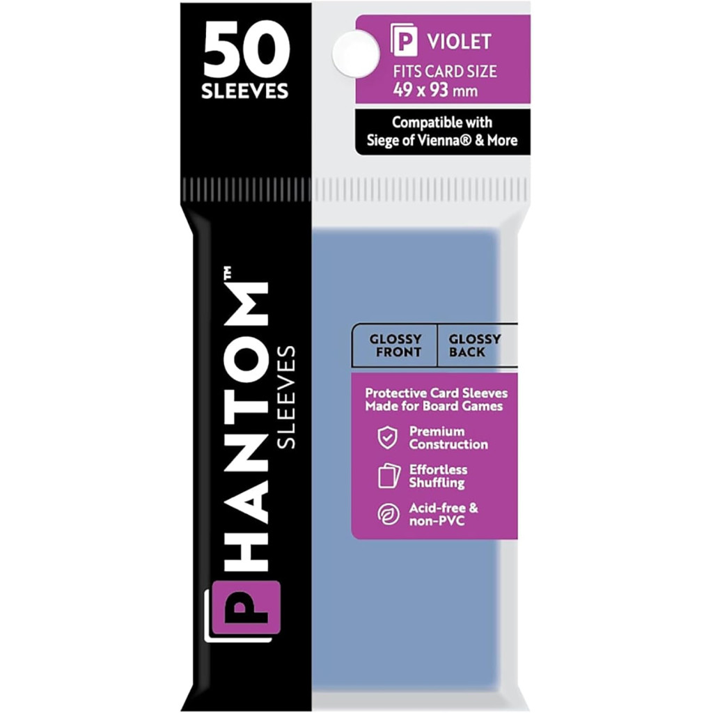 Phantom Sleeves: Violet Size - Gloss/Gloss est un lot de 50 pochettes de protection de cartes brillantes et de taille 49 mm x 93 mm.