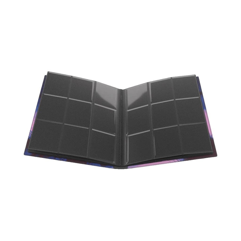 L’album contient 20 pages, chacune dotée de 18 pochettes latérales, pour une capacité totale de 360 cartes (même en double-sleeve).