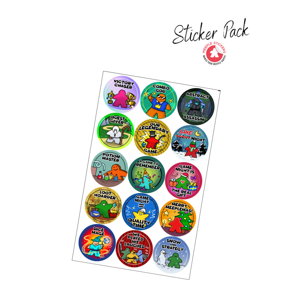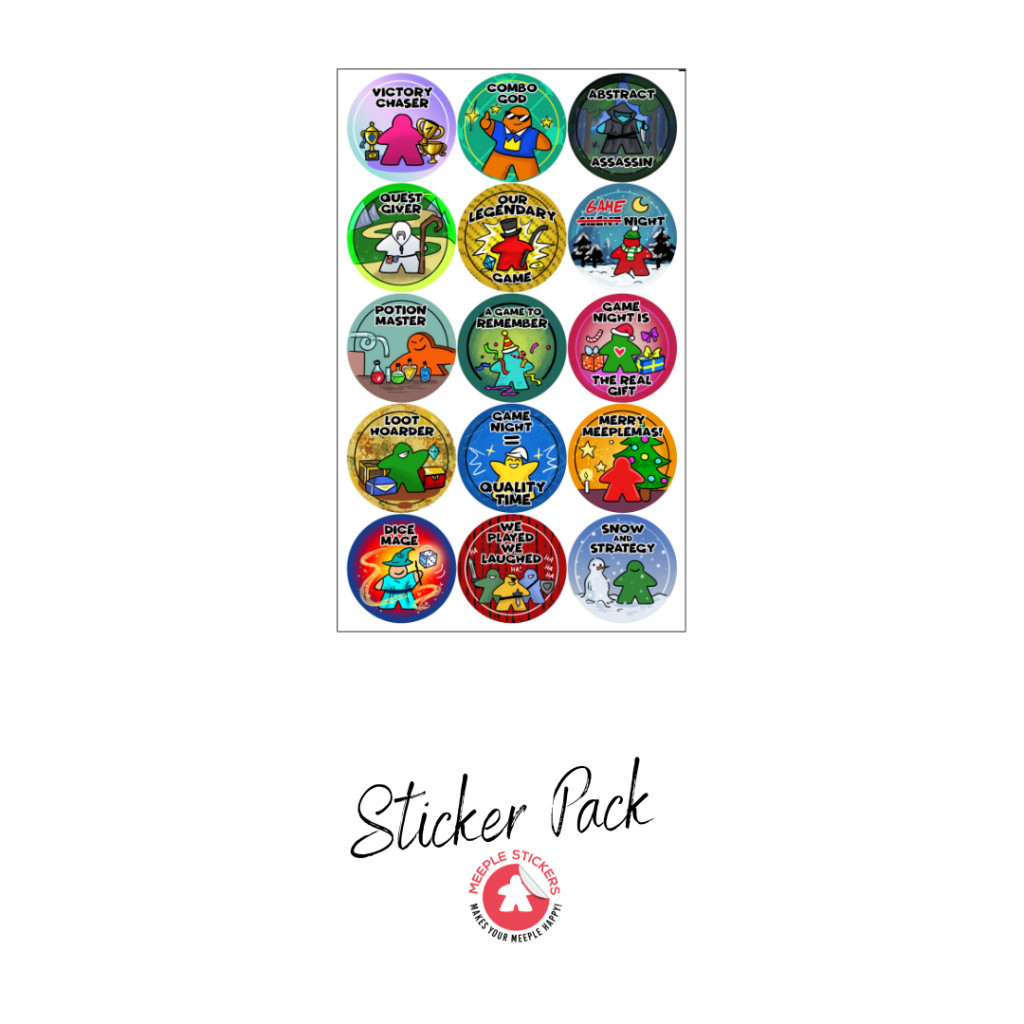 Chez MeepleStickers, nous avons créé un superbe set d’autocollants pour les plus grands passionnés de jeux de société ! De nouveaux motifs amusants autour de 9 thèmes différents, chacun partageant l’amour du jeu de société avec vos amis. Offrez ces autocollants uniques et colorés à vos amis après vos soirées ludiques pour vous souvenir ensemble de tous ces bons moments, ou collez-les sur vos accessoires pour montrer au monde où se trouve votre cœur !