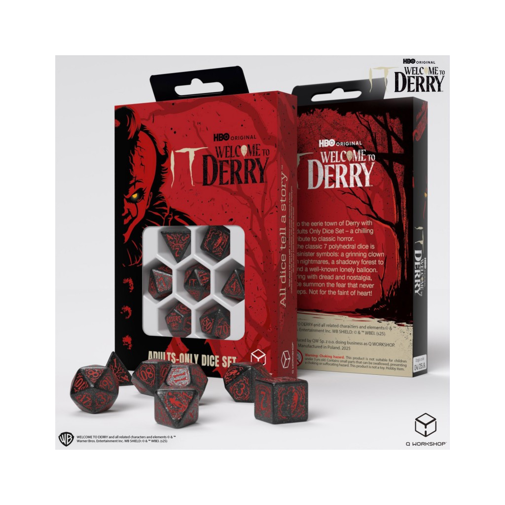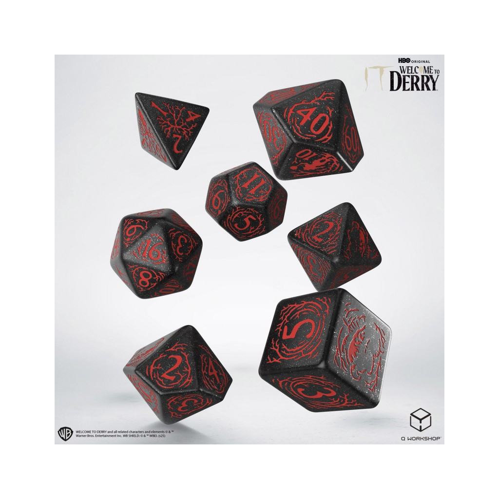 Découvrez l’obscurité de l’une des histoires d’horreur les plus saisissantes de tous les temps avec ce set de dés, inspiré de IT: Welcome to Derry. Conçu pour les joueurs qui aiment leurs parties avec une dose de terreur, ces dés noirs pailletés aux gravures rouge sang profond présentent des motifs glaçants : le clown souriant, une forêt ombragée et le ballon solitaire qui n’a pas besoin d’introduction. Tellement effrayant que nous avons dû indiquer « 18+ »… terriblement réussi, mais absolument pas pour les enfants.