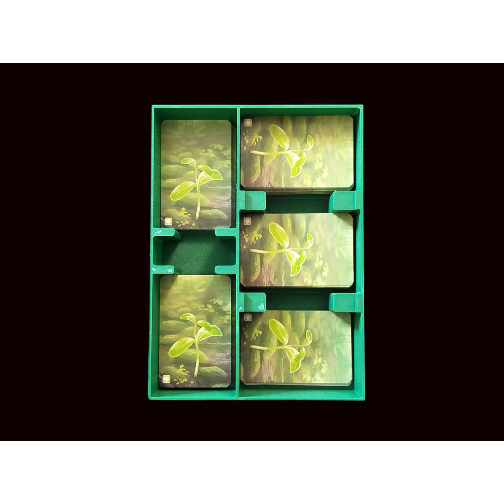 Cet insert de rangement compatible avec le jeu Forêt Mixte (Forest Shuffle) et ses extensions, vous permet de ranger parfaitement vos cartes avec sleeves dans une seule boite.