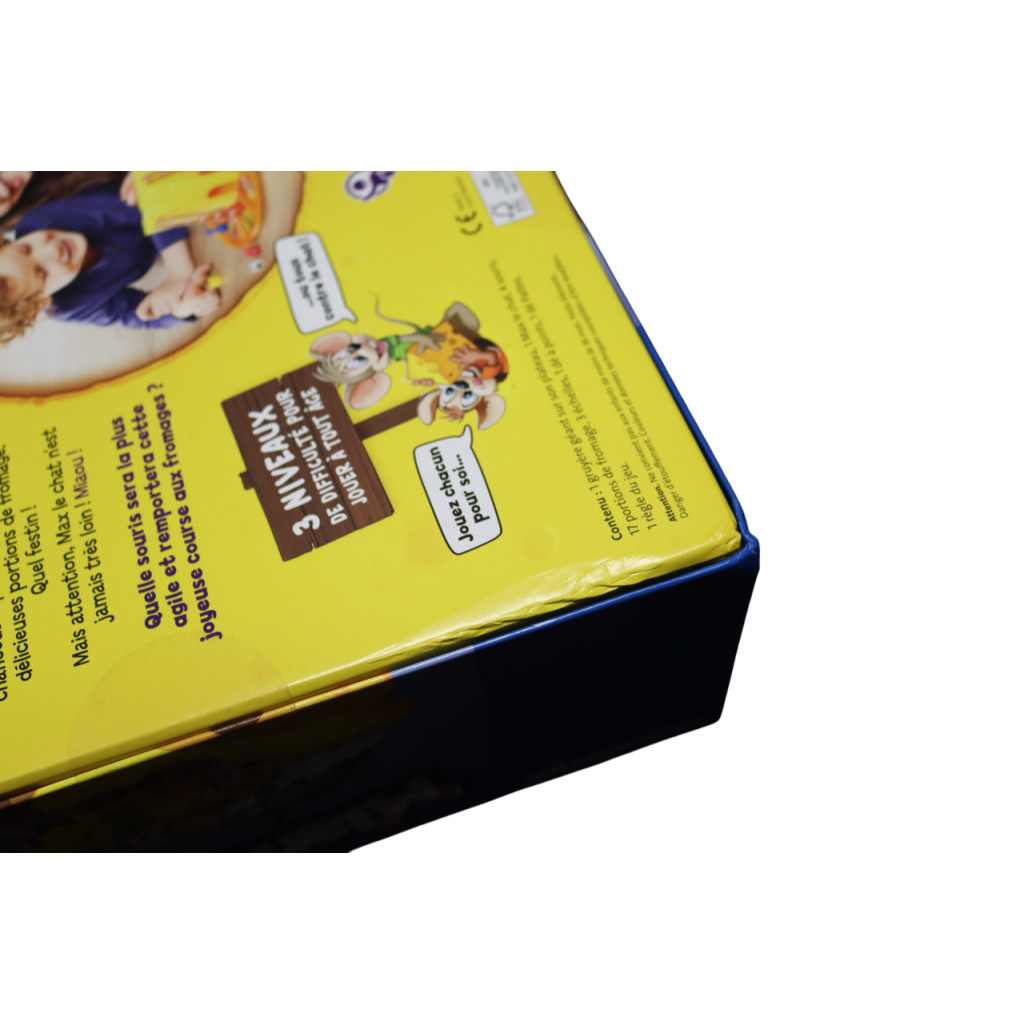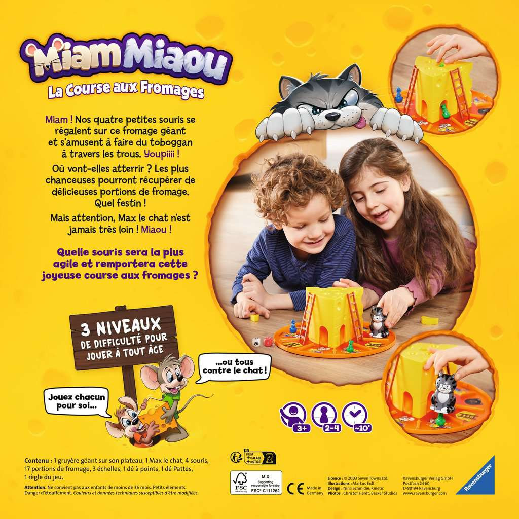 Mais attention ! Max le chat rôde…La souris qui ne sera pas attentive risque d’être effrayée et de perdre rapidement son trésor. Il arrive même parfois que Max, par son audace, réussisse à bloquer une souris jusqu’à ce que l’une de ses amies viennent la délivrer. Quelle souris sera la plus agile et remportera cette joyeuse course au fromage ? Jeu évolutif avec 3 niveaux de difficulté. Peut également se jouer de façon coopérative. Dès 3 ans.