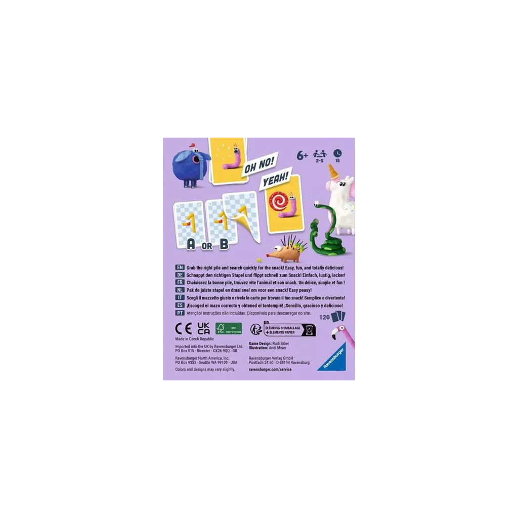 Le plus rapide à retourner l'animal avec le snack correspondant marquera des points et remportera cette chasse aux snacks