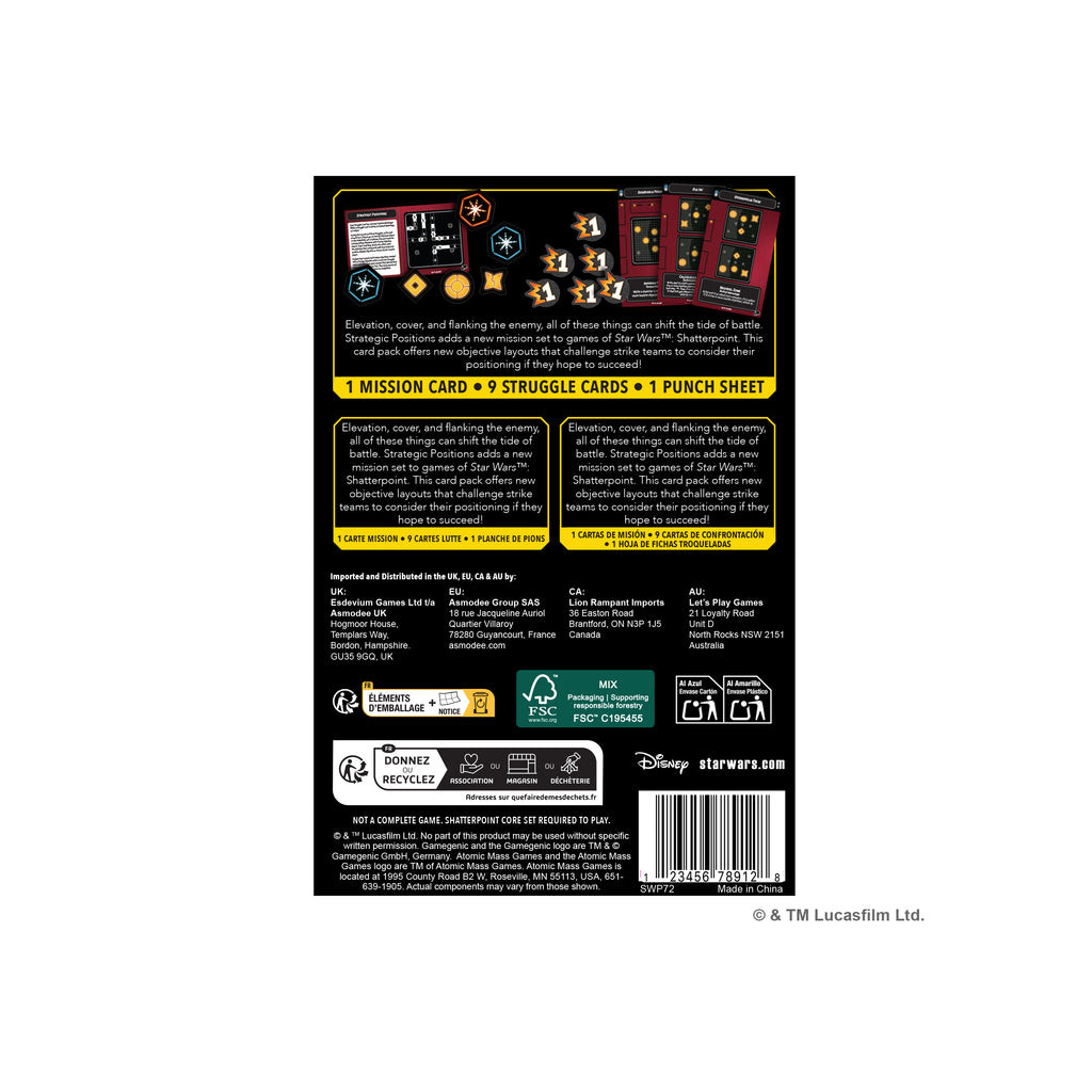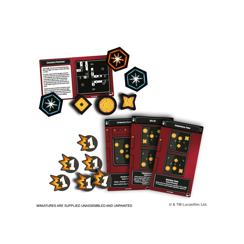 Strategic Positions ajoute un nouvel ensemble de missions composé de 9 cartes (3 Luttes I, II et III) aux parties de Star Wars: Shatterpoint.