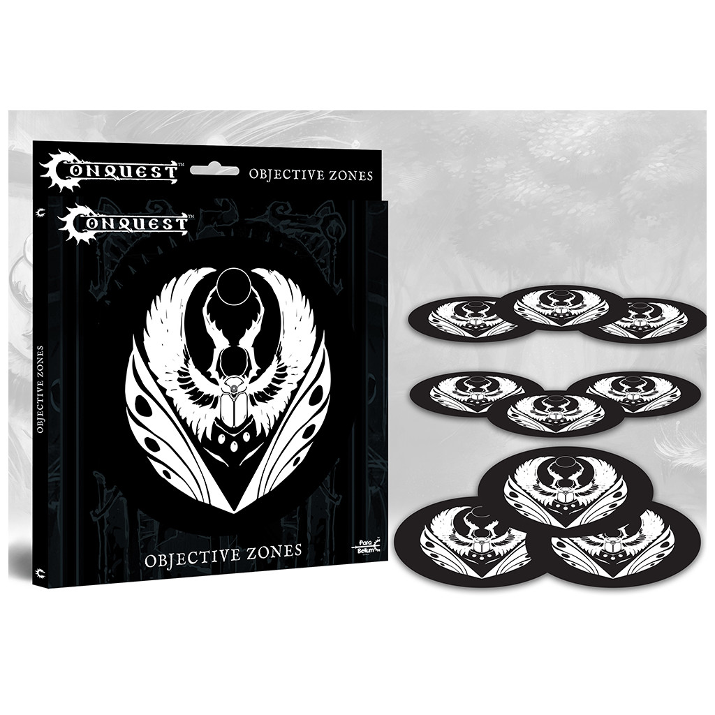 Il s’agit d’un ensemble de 9 zones d’objectifs noires arborant le logo de faction White Weaver Courts, qui apporte encore plus l’ambiance de Conquest à votre table. Fabriquées dans un matériau nouveau et unique qui ne glisse pas sur le plateau tout en permettant à vos figurines de se déplacer facilement dessus, autour et en dehors, ces zones ultra fines sont en polypropylène de 0,5 mm. Parfaites pour tout type de wargames. L’ensemble comprend trois zones de 23 cm et six zones de 15 cm, emballées ensemble.